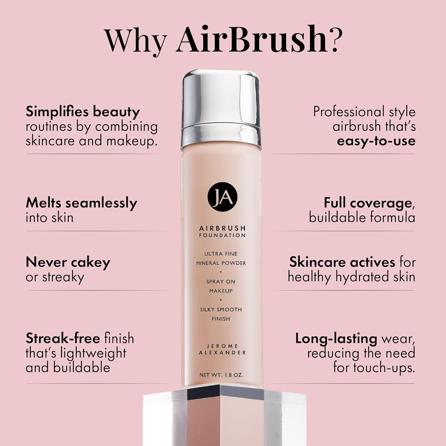 - Effortless Beauty: Experience the allure of Jerome Alexander Airbrush Foundation. This makeup foundation offers an ultra-light, buildable, full-coverage formula that creates a flawless and silky-smooth finish, making you feel effortlessly beautiful every day.