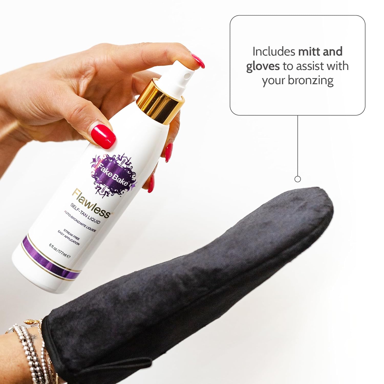 - FLAWLESSLY TANNED WITHOUT THE SUN - Built-in color guide so you can see where it's going from back to legs, ensuring solid application; includes mitt and gloves to assist with your bronzing.