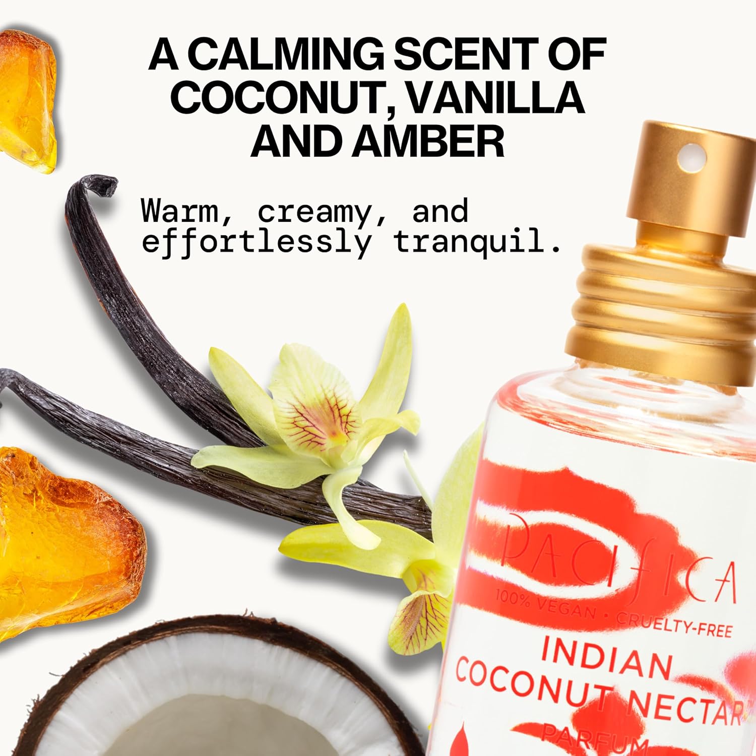 Pacifica Indian Coconut Nectar Perfume Spray – Tropical Vanilla & Coconut Fragrance, Layerable Beachy Perfume for Women, Clean, Non-Toxic, Vegan & Cruelty-Free Formula, All-Day Long Lasting