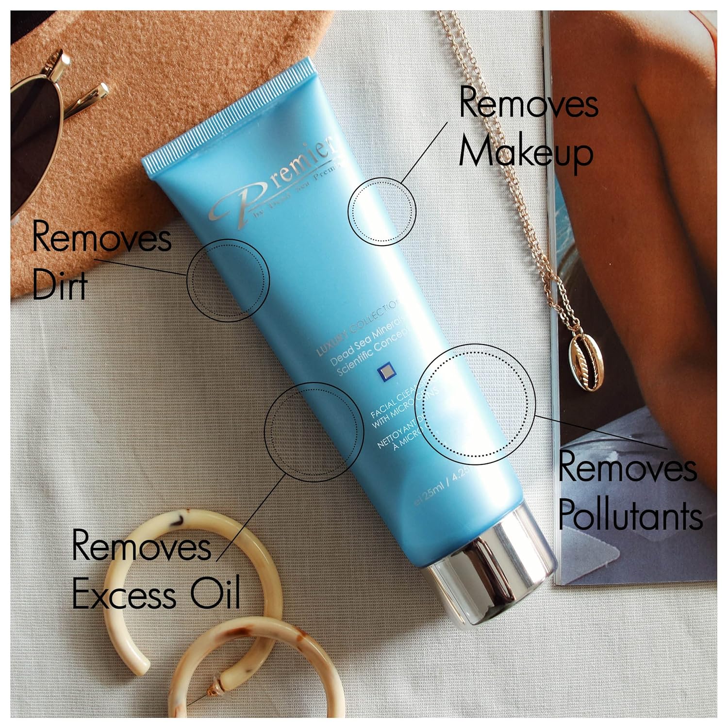 Premier Dead Sea Facial Cleanser with Micro Grains, Luxury collection foaming face wash, daily use skin care, nondrying, anti-aging Skin Care with aloe vera, witch hazel, Dermatologist Tested 4.4fl oz