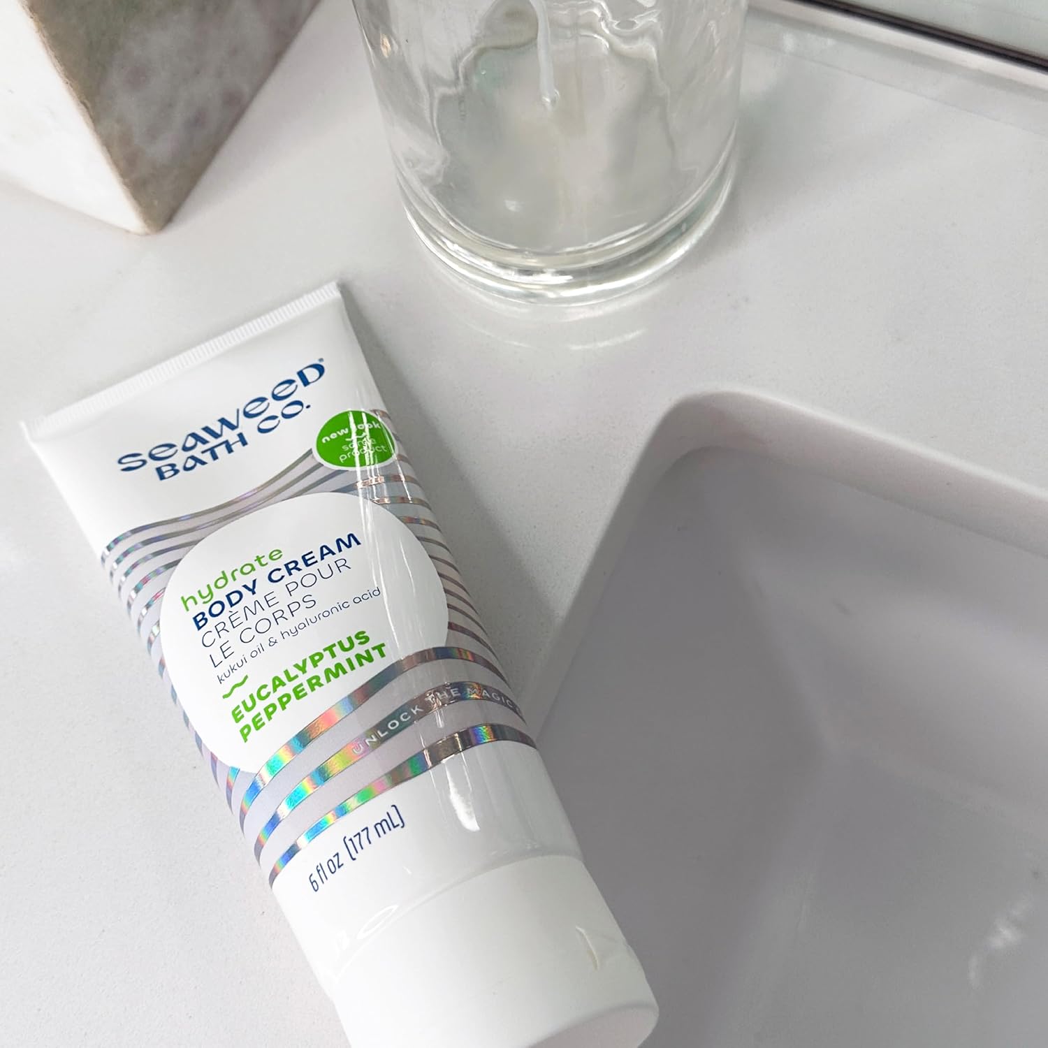Seaweed Bath Co. Hydrate Body Cream, Eucalyptus Peppermint Scent, 6 Ounce, Nourishing Hand & Body Lotion Moisturizer for Dry Skin, with Sustainably Harvested Seaweed, Kukui Oil, Hyaluronic Acid