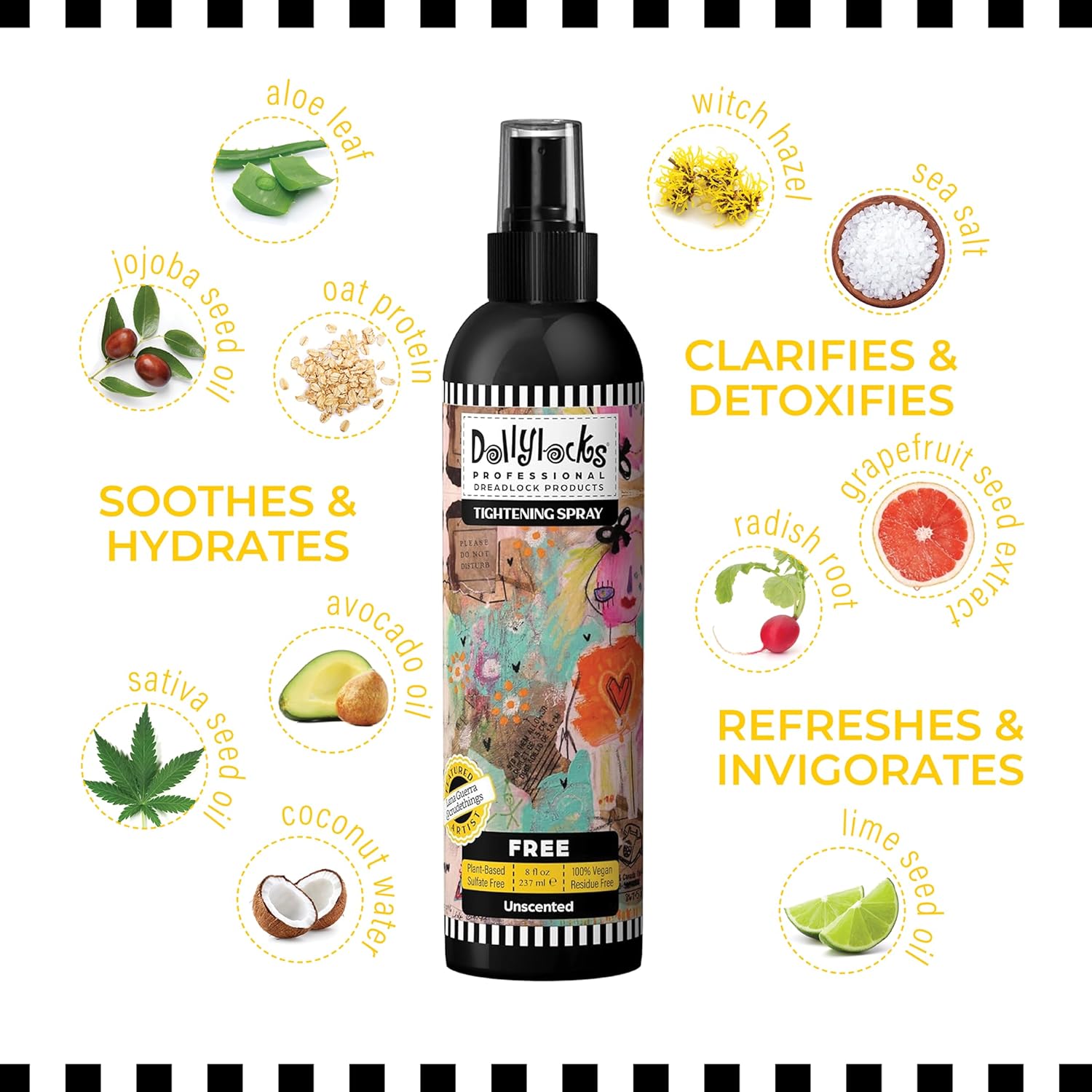 Dollylocks Tightening Spray – The Original Dreadlock Tightening & Residue-Free Loc Spray, Plant-Based, Vegan & pH-Balanced (Free Scent, 8oz)