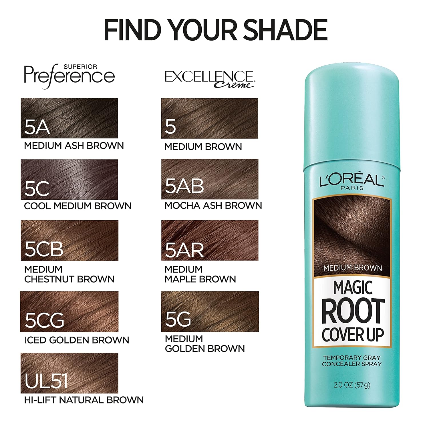 - Match Your L'Oreal Paris Hair Color- Magic Root Cover Up shades are formulated to match your L'Oreal Excellence or Superior Preference shade, for an easy, quick fix between colorings