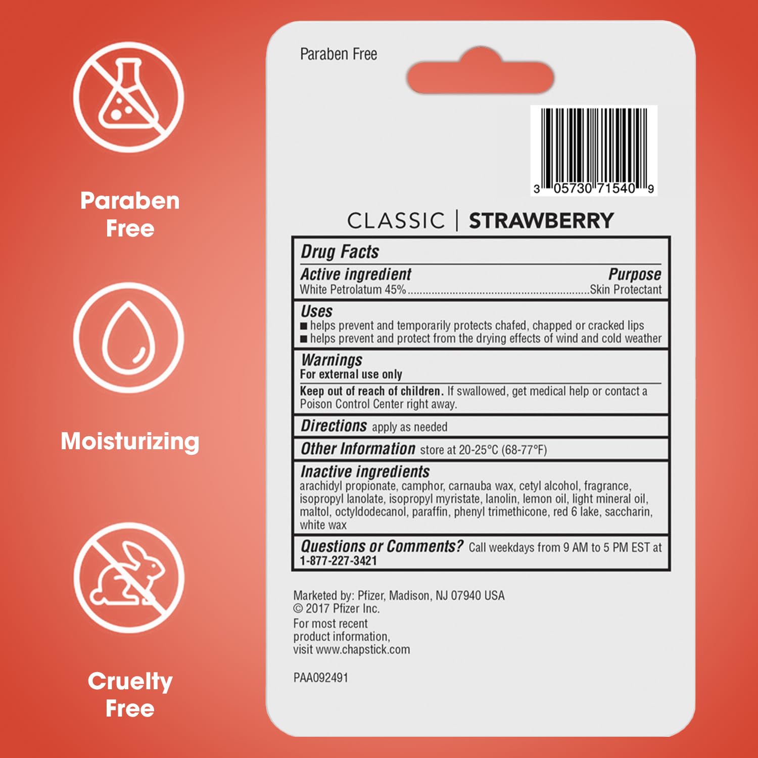 - CLASSIC STRAWBERRY CHAPSTICK: Stock up on Strawberry Chapstick. Each sheer-tinted lip balm is functional, portable, and flavorful.