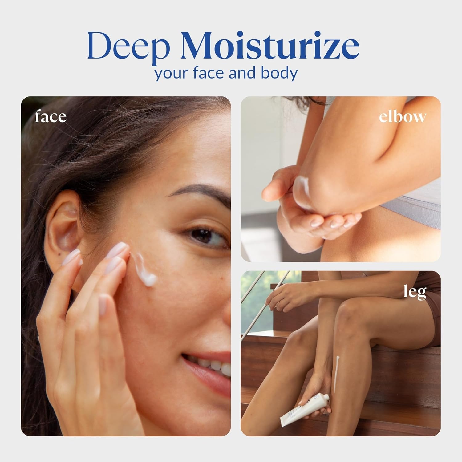 - + GENTLE ON SKIN + Suitable for use as a face moisturizing cream, neck cream, hand cream, and body lotion.