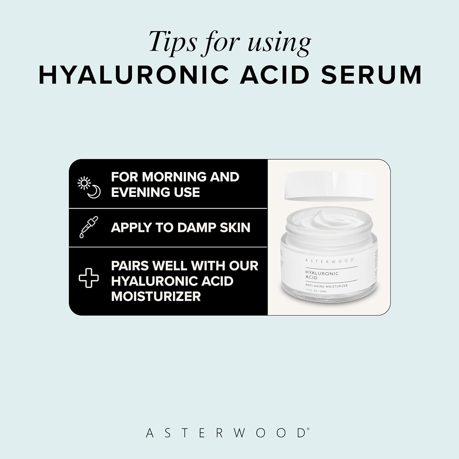 Asterwood Hyaluronic Acid Serum for Face - Plumping, Anti-Aging, Hydrating - Fragrance-Free - 8 Fl Oz