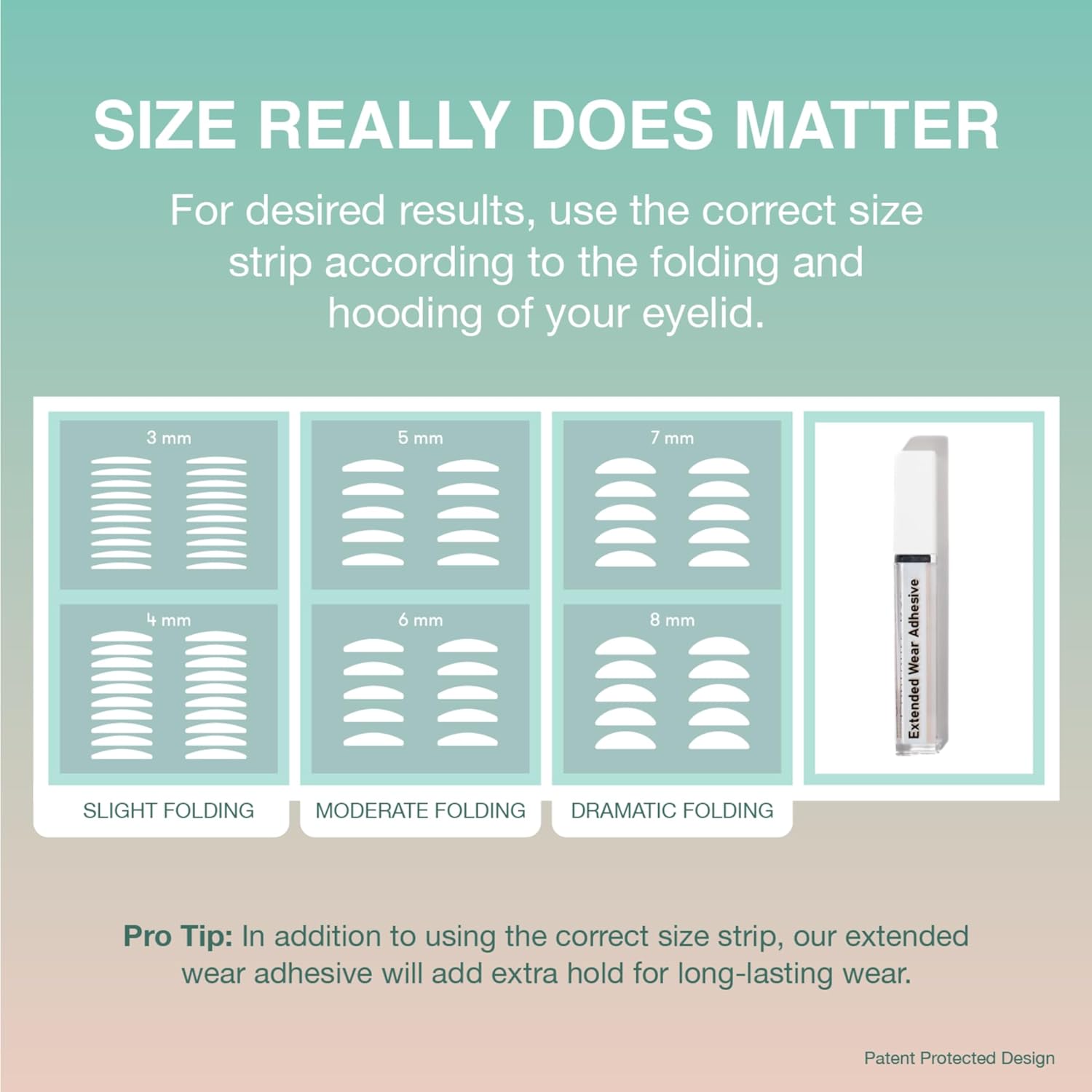 - Contours Rx Quality - Lids by Design eyelid tape ranges from a subtle 3mm size to a more dramatic 8mm size in the look and definition of your eyelids. Correcting eyelid correcting strips include 80 strips, a months supply of relief from heavy hooding, excess skin, and tired looking eyes. Each set comes with tweezers for a fast and smooth application.