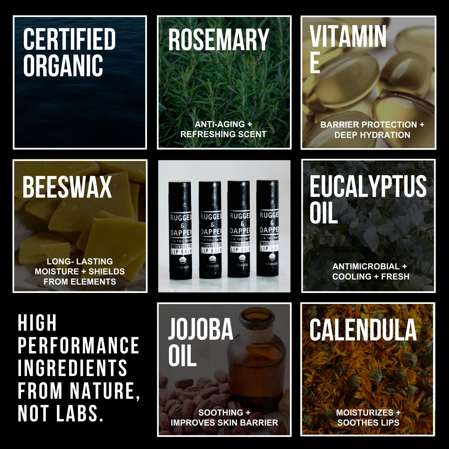 - 🏴 CERTIFIED NATURAL + ORGANIC INGREDIENTS: Crafted in the USA with high-quality, natural ingredients like beeswax, jojoba oil, and invigorating eucalyptus. Free from harmful chemicals, this refreshing lip balm for men nourishes and softens for healthy, kissable lips.