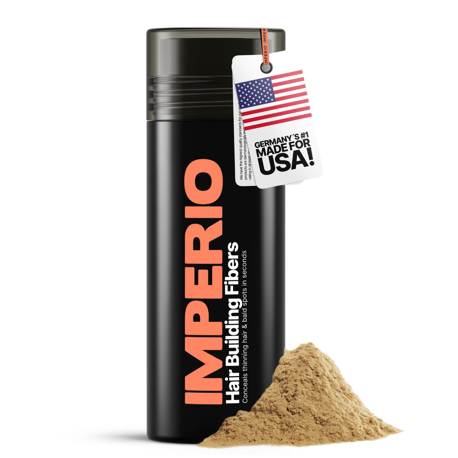 - DERMATOLOGICALLY TESTED IN GERMANY - IMPERIO hair fiber is particularly gentle and kind to skin and hair. The hair building fibers have been tested by an independent laboratory in Germany without causing any adverse reactions. The hair thickener is dermatologically rated "very good" and maintain a high-quality standard.