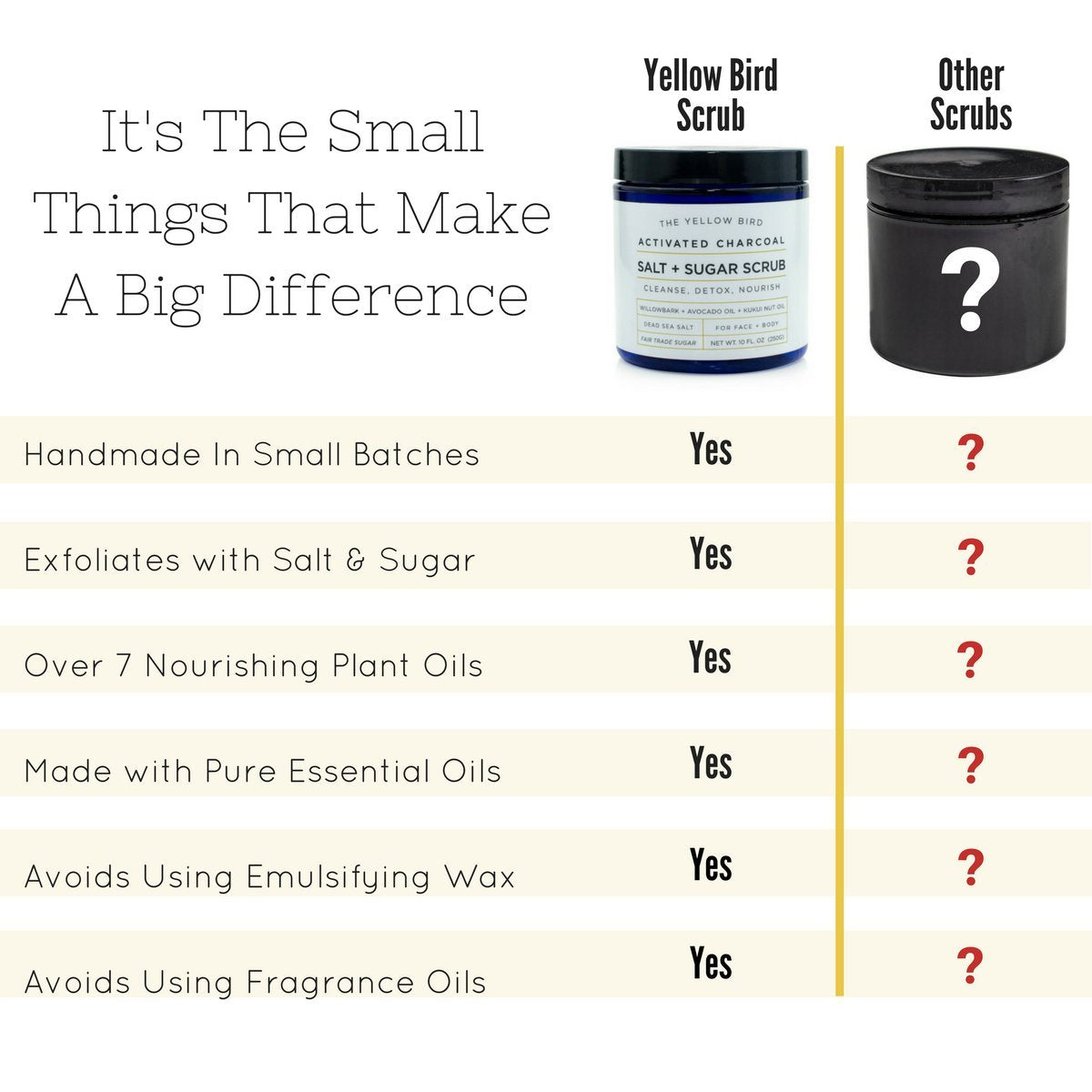 - Baby Soft Skin - Rediscover the skin of your youth. Hydrate and exfoliate with our salt & sugar scrub to get the most supple skin. Made with mild wholesome ingredients that wonβt irritate. Use as a gentle face scrub and exfoliating body scrub.