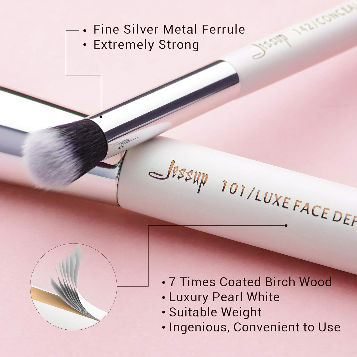 - Superior Craftsmanship: Jessupโ s makeup brushes are handcrafted by our experienced professionals. We have our own R&D, factory and a thorough manufacturing system. All makeup brushes will go through a rather strict inspection and โair outโ process before delivering to your hands! We are keen to provide you the premium quality as well as odor-free makeup brush sets.