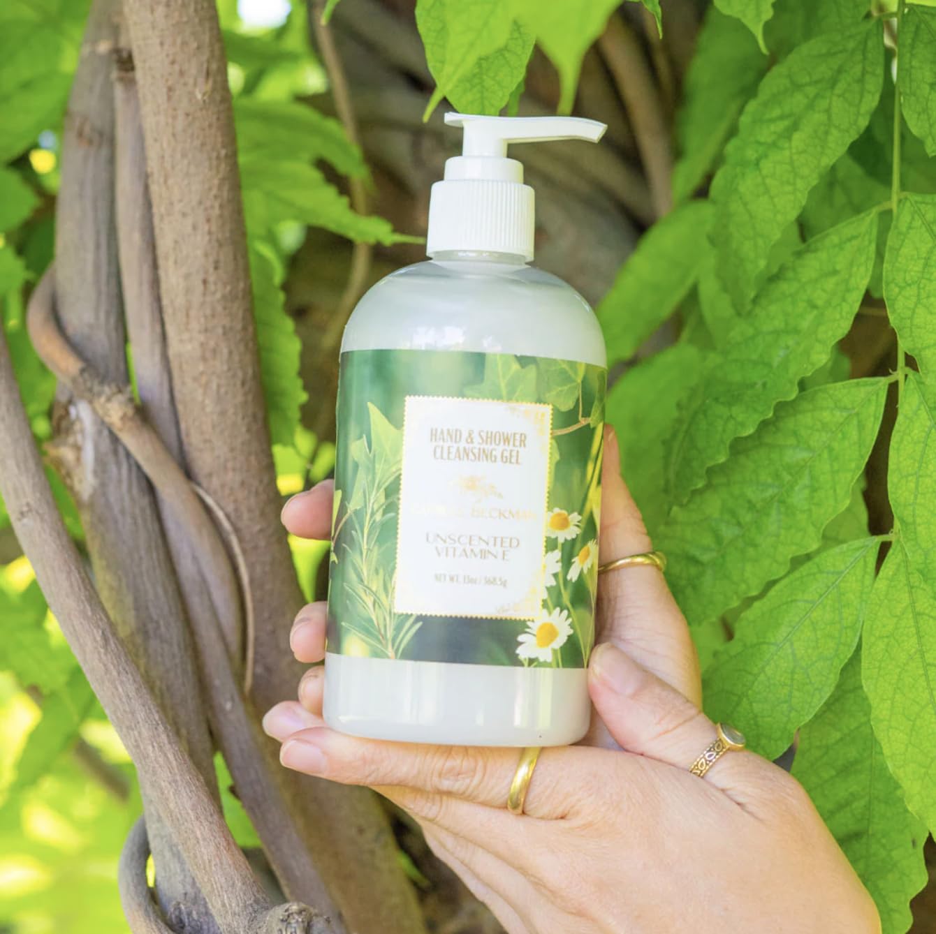 - Experience Camille Beckman’s Essentials Gift Basket containing Glycerine Hand Therapy 6 oz, Silky Body Cream 13 oz, Hand and Shower Cleansing Gel 13 oz, Glycerine Soap, a bath body net and fair-trade hyacinth leaf gift basket