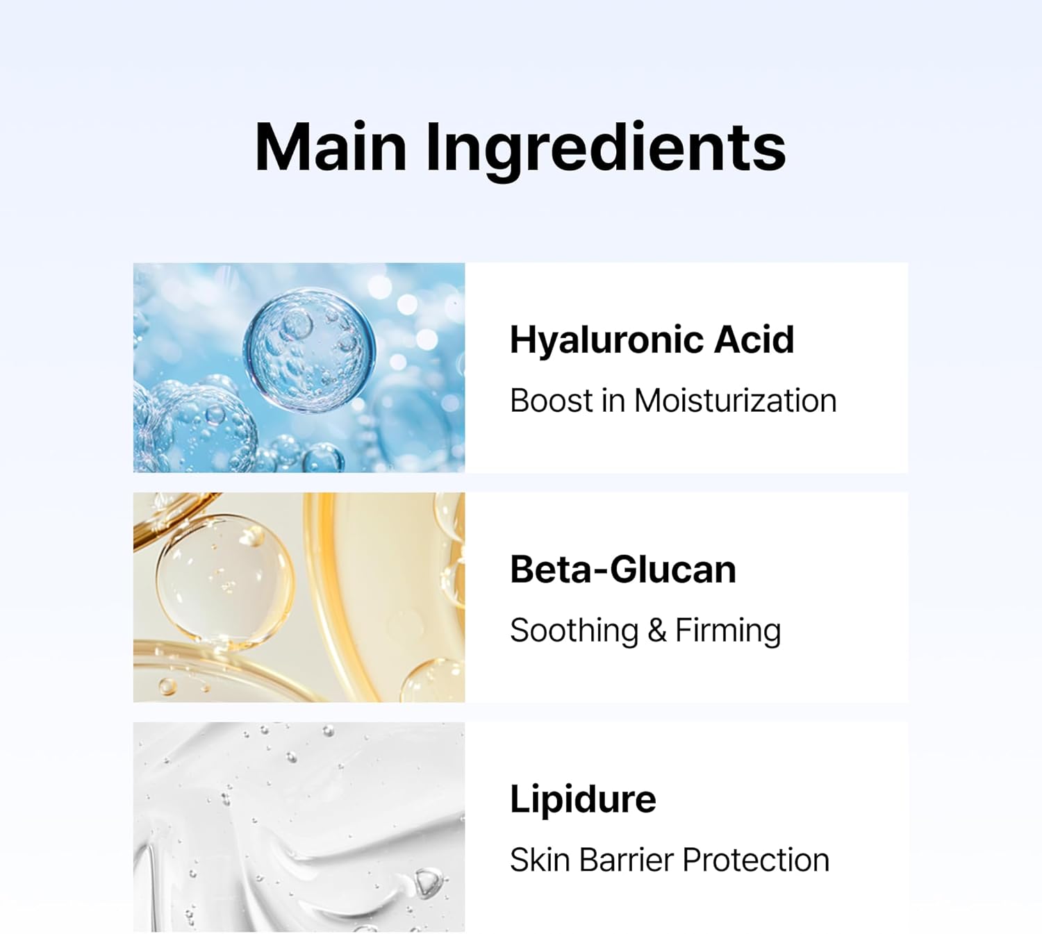 - 💧DEEP HYDRATION FOR RADIANT SKIN: Packed with Beta Glucan, Lipidure, Hyaluronic Acid, and Centella Asiatica Extract. Delivers a burst of moisture to inner skin layers for a radiant and healthy complexion.