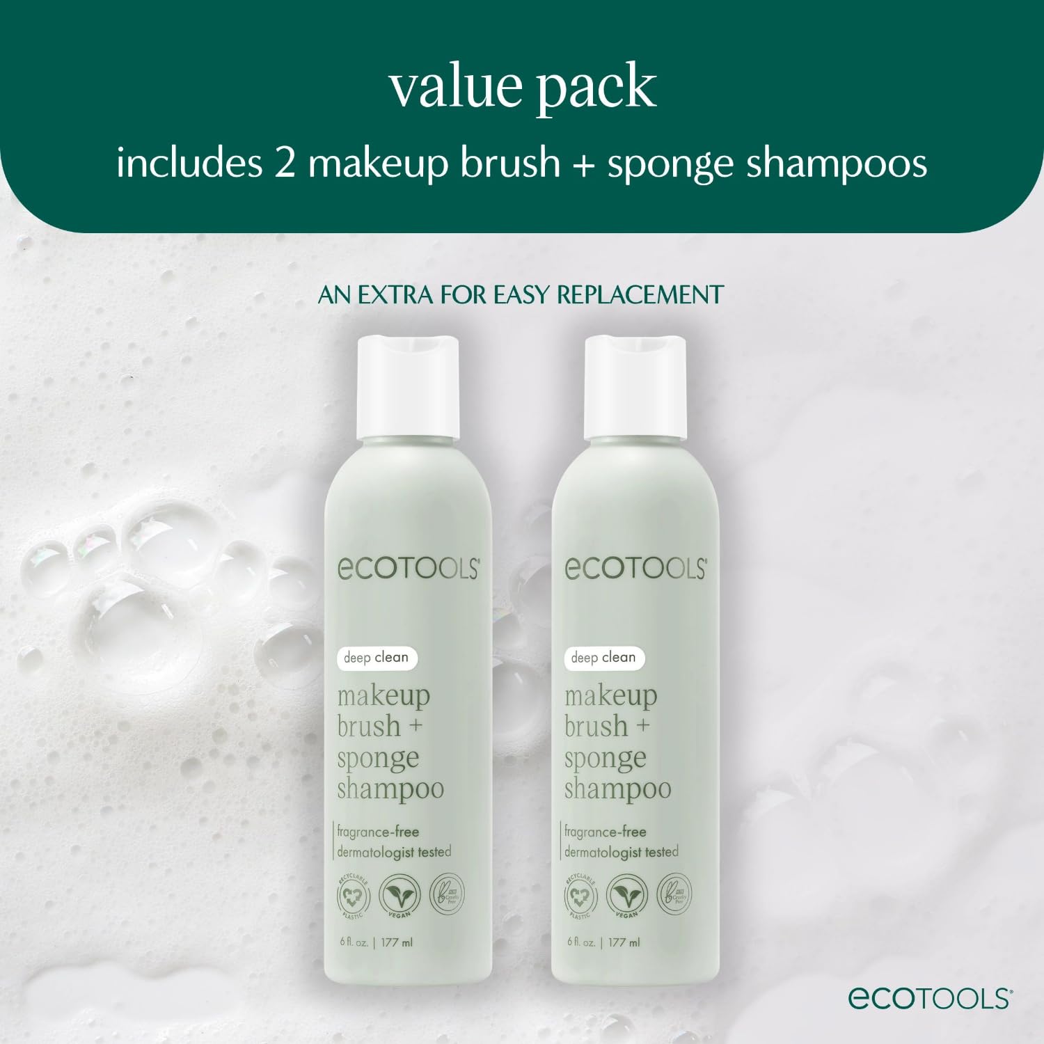 - Value Pack Includes: (2) EcoTools Makeup Brush + Sponge Shampoos to remove makeup, oil, and impurities from your makeup brushes and makeup sponges so they stay in good condition for flawless makeup application. Never run out by using Subscribe & Save