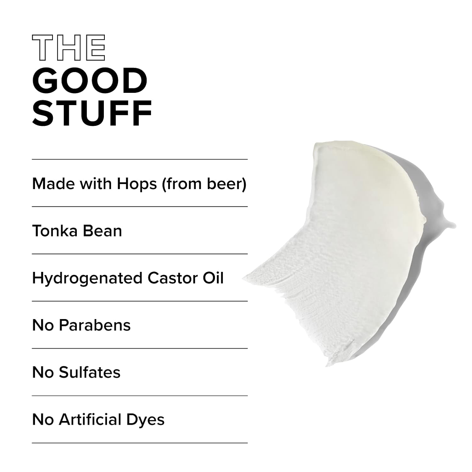 - Infused with Hops - If you've been struggling with greasy hair or a flaky scalp, try out this water based pomade. Hops are an effective conditioning and thickening agent that can create volume while regulating the appearance of grease and flakes.