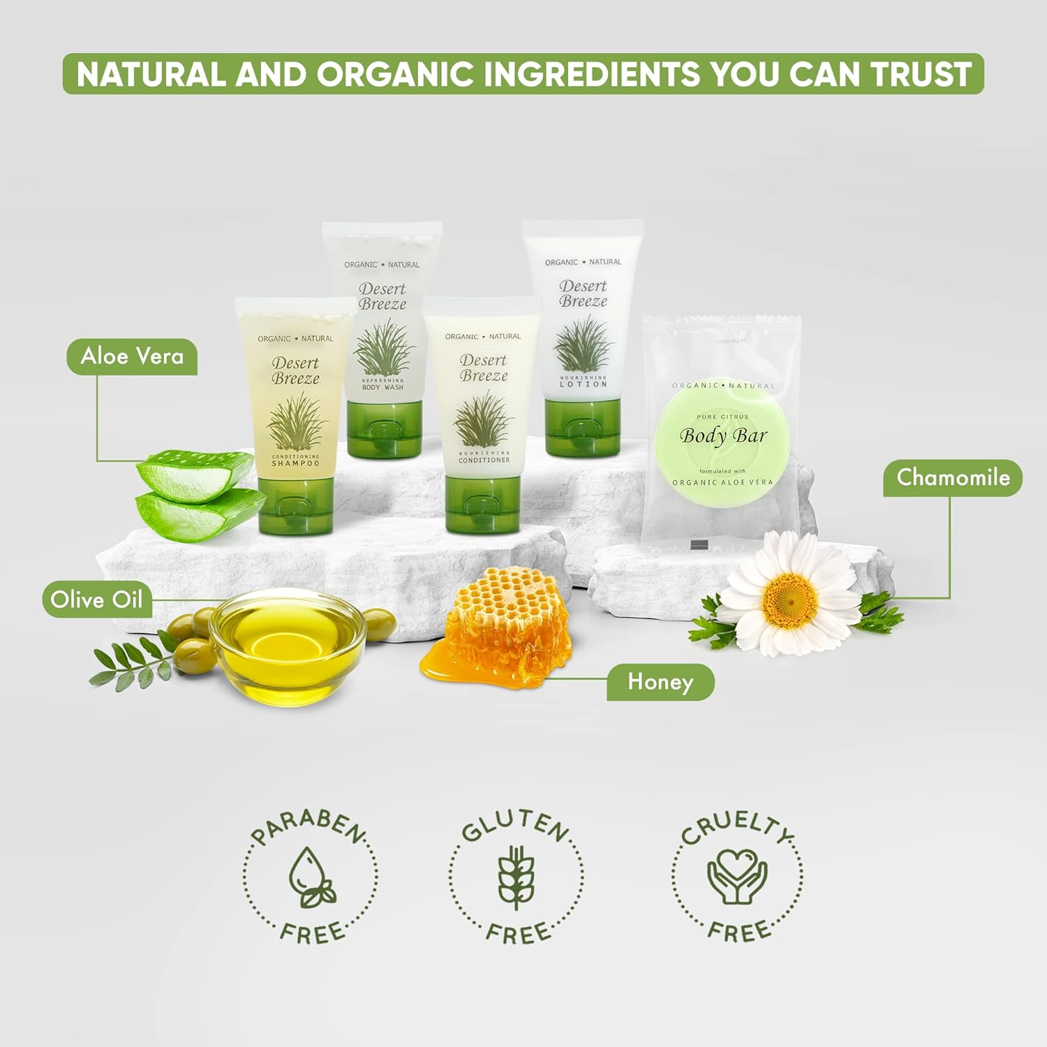 Desert Breeze Hotel Soaps and Toiletries Bulk Set | 1oz Hotel Shampoo & Conditioner, Body Wash, Body Lotion & Bar Soap | Travel Size Toiletries 300 Pieces
