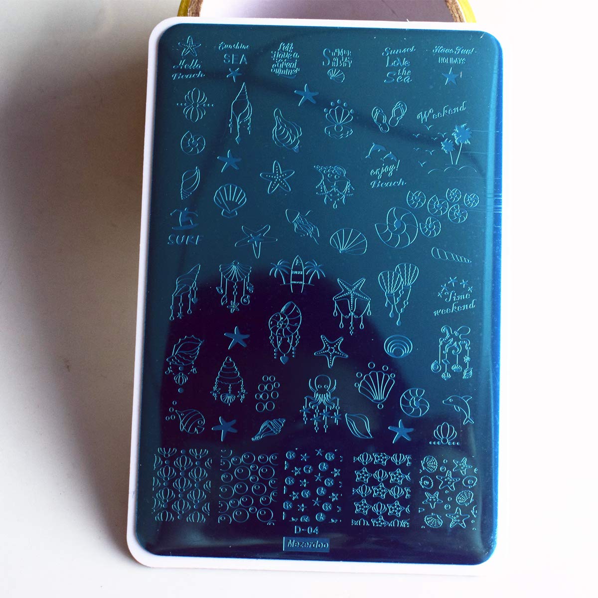 - NAIL ART STAMPING PLATES PATTERN: The Stamping Plates Contain Flower, Geometric, Sea Shell English Letter, Weekend Surf, Autumn Night Sky And Summer Travel Themes Inspire Your Ideas Of The Whole Year