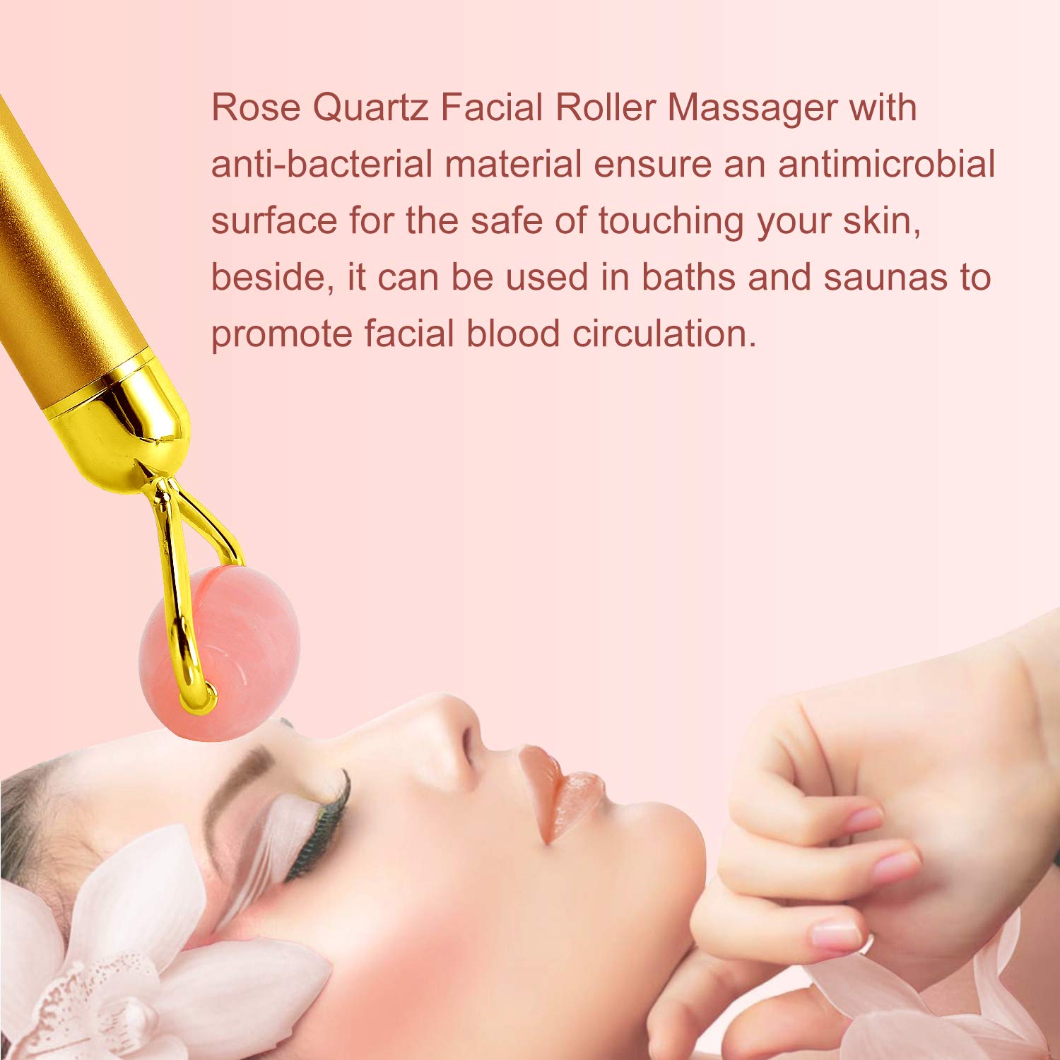 DANGSHAN 2-in-1 Electric Jade Roller Massager Facial Roller & Face Massager, Rose Quartz