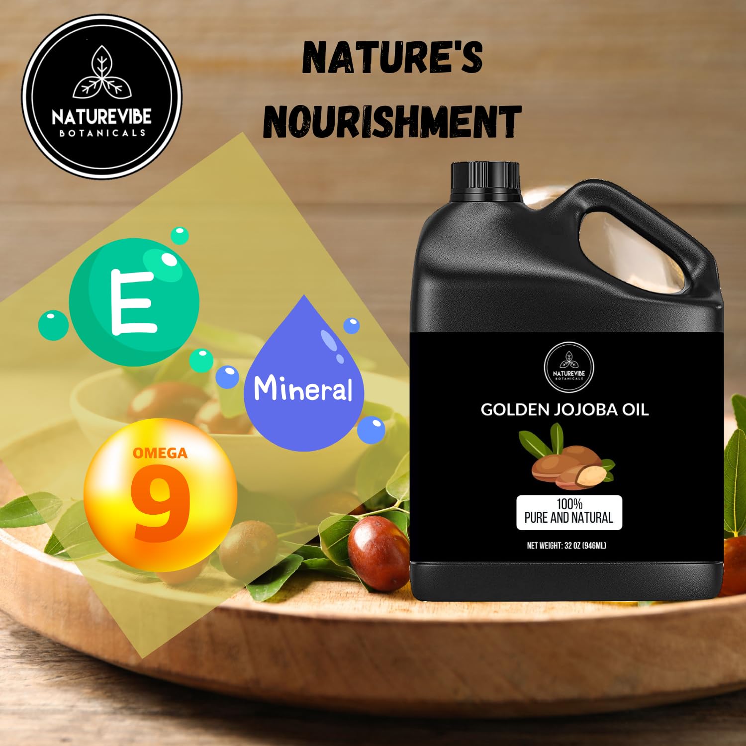 - ✔️Naturevibe Botanicals Golden Jojoba Oil - 32 Ounces 100% Pure & Natural | Cold Pressed | Great for Skin and Hair | Used as Body Massage Oil (946 ml)