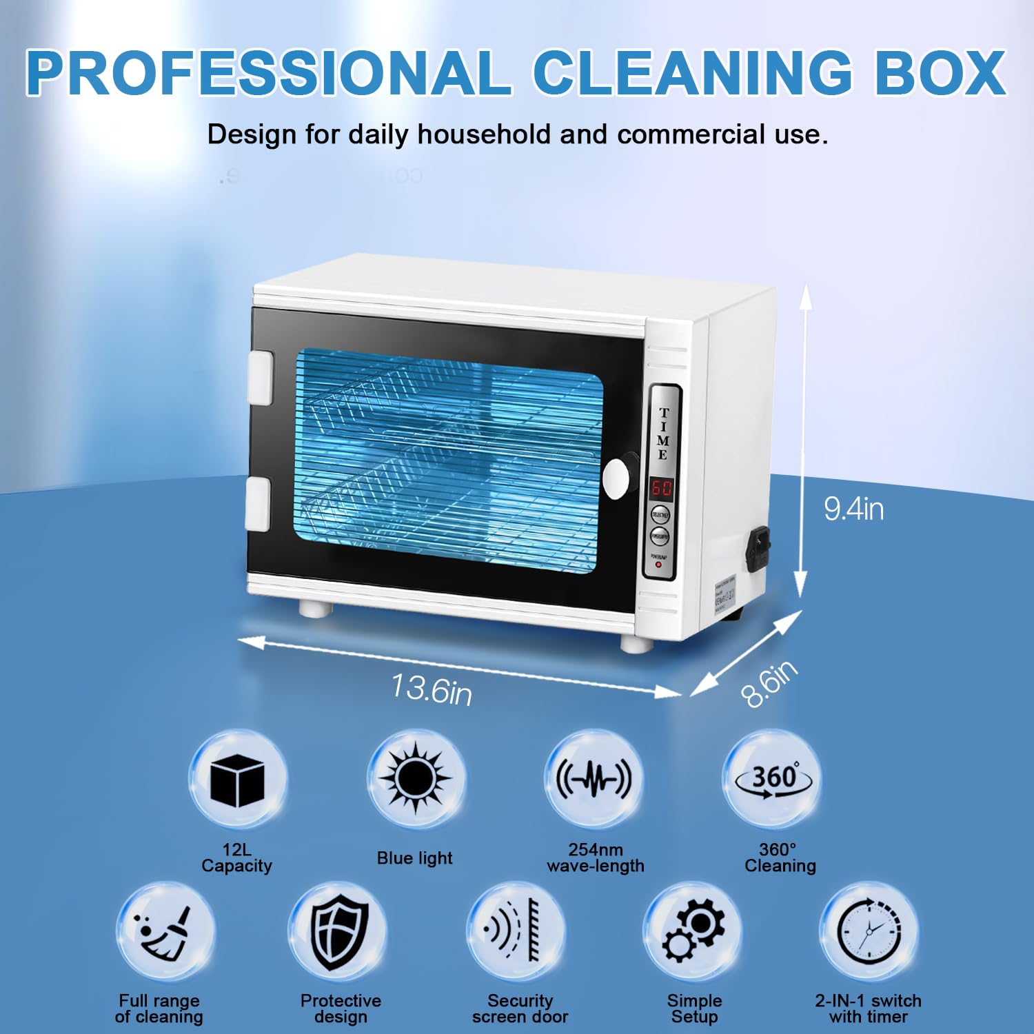 Nail Tool Cleaning Machine, 12L High Capacity Multi-Functional Nail Cleaner Box Manicure Tool Cleaning Cabinet Salon Equipment for Spa Beauty Home Metal Tools With Replaceable Lamp