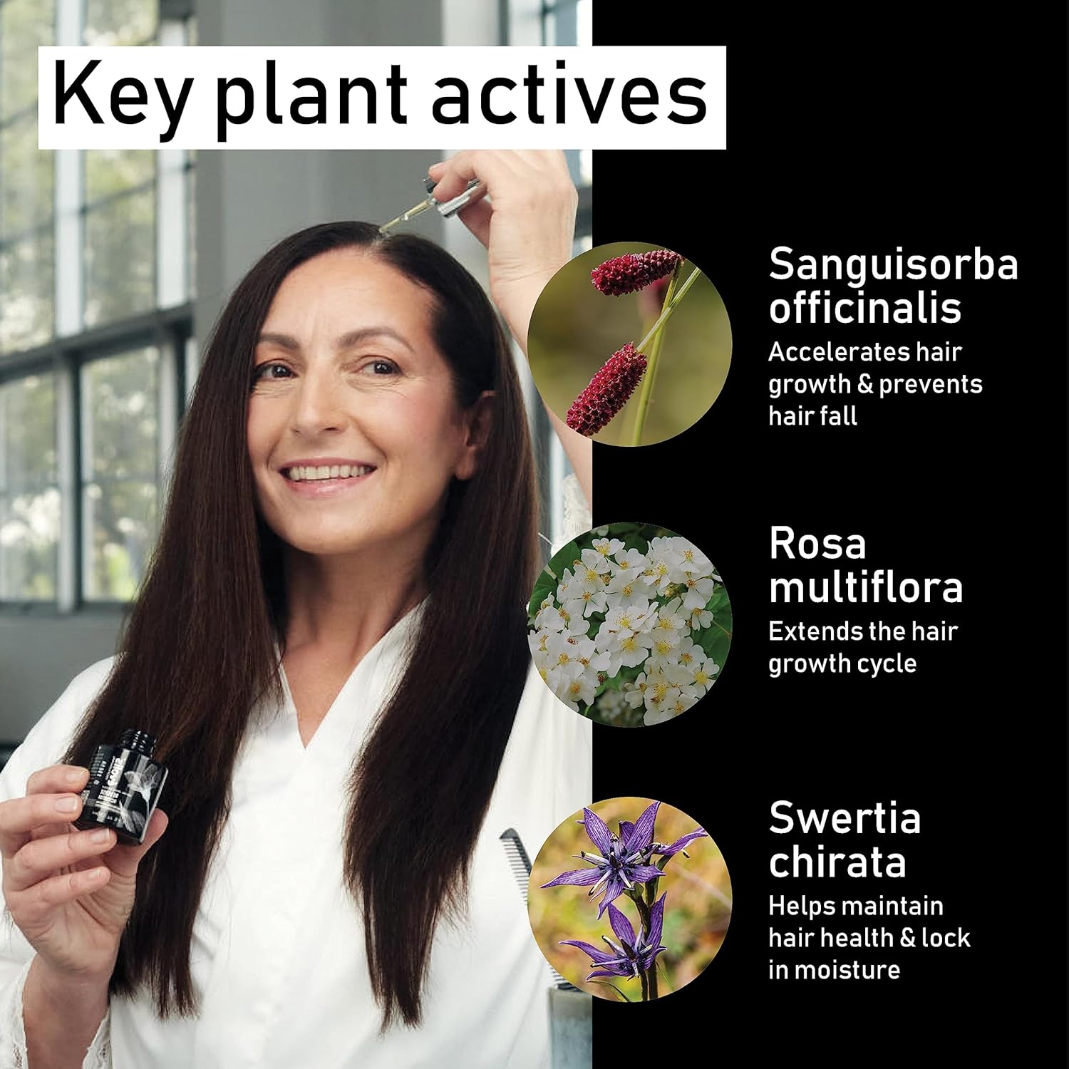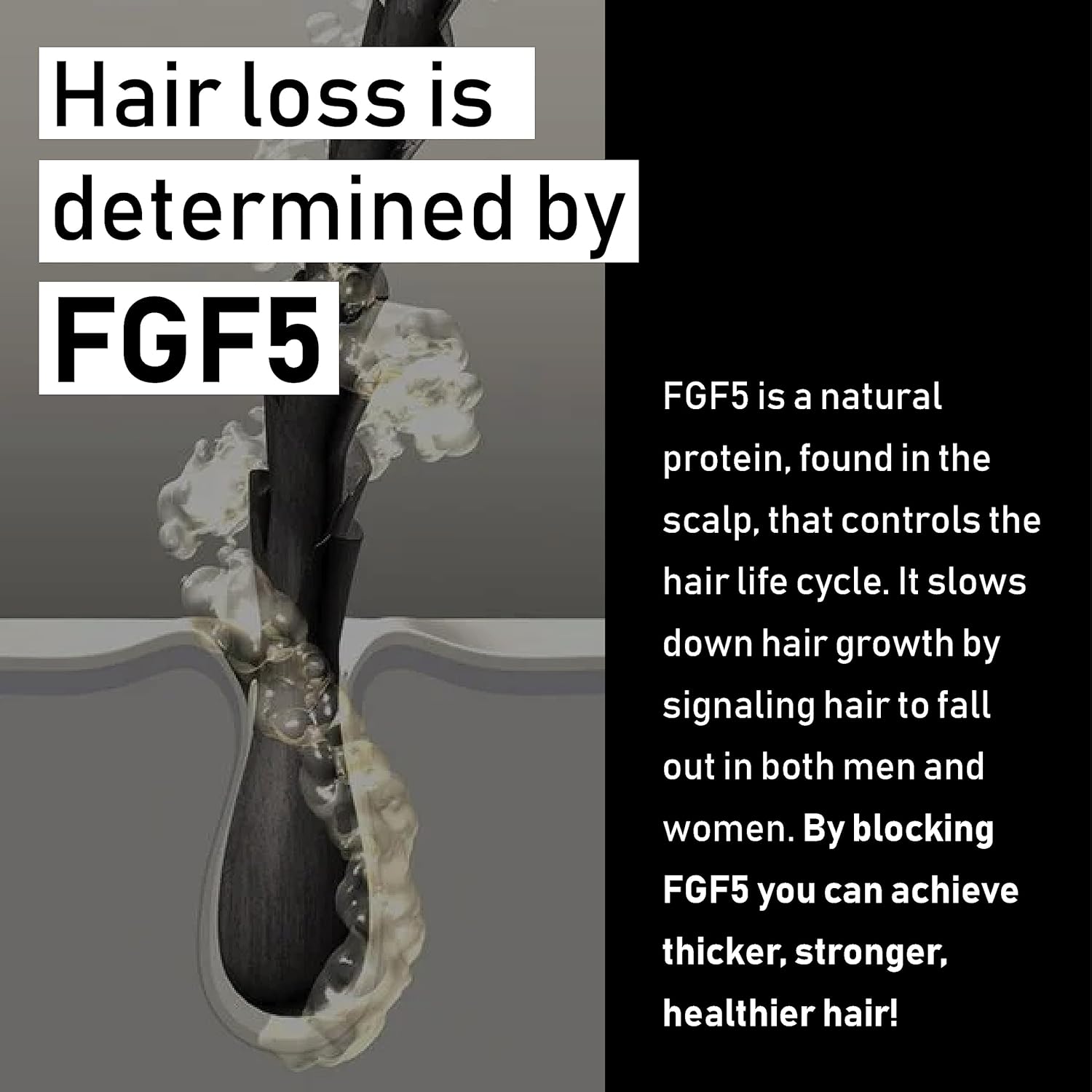 - Proprietary Blend of Scalp-Nourishing Actives β A powerful scalp treatment infused with a blend of antioxidants, natural hair thickening products, and FGF5 blocking botanicals, a key protein responsible for hair loss, to extend the hairβs natural growth cycle. The self-dosing pipette ensures precise application, delivering the right amount of product for optimal scalp and strand care.