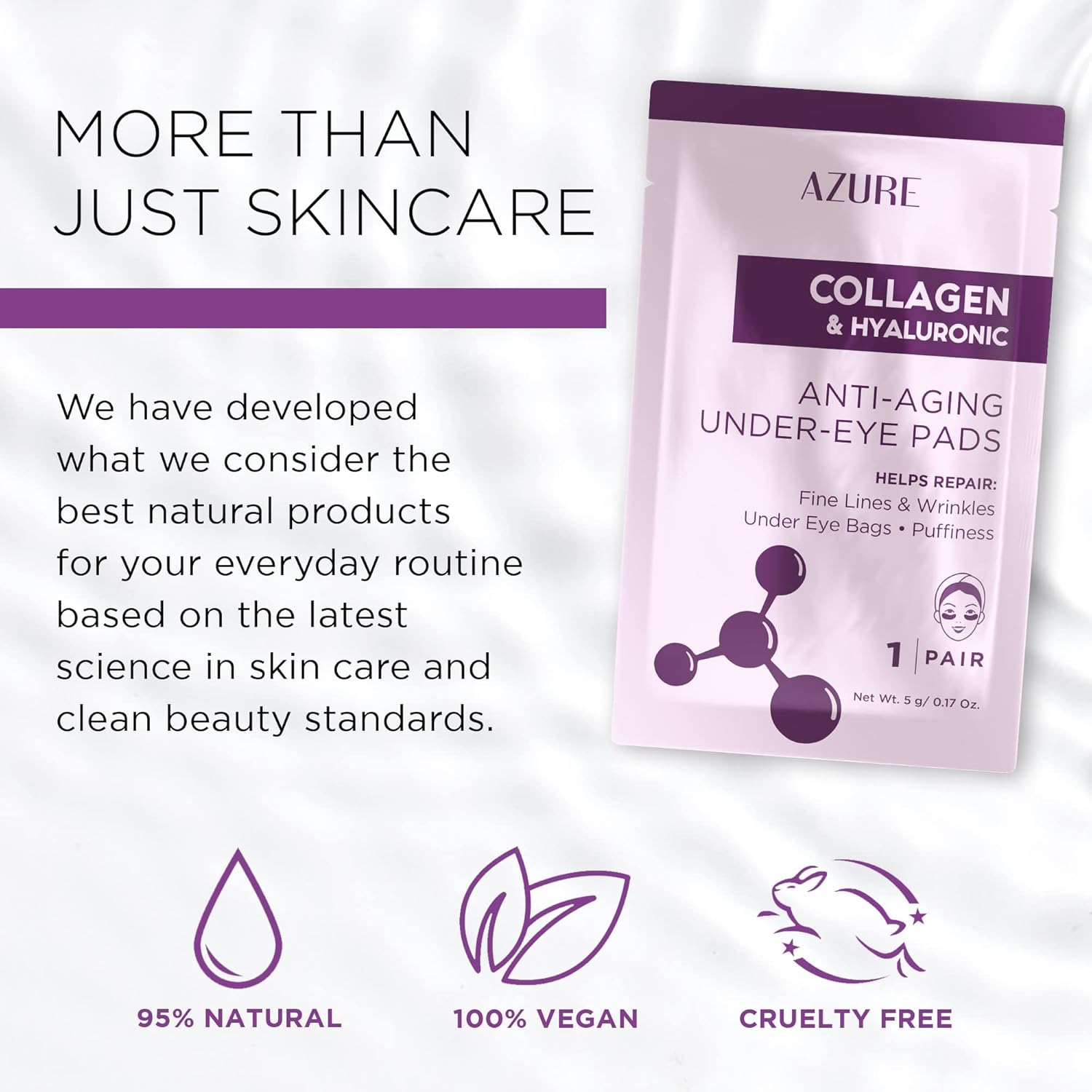 - PREMIUM ACTIVE INGREDIENTS: Our skincare products are made from high-quality ingredients. Our under-eye masks are infused with collagen, which reduces the appearance of fine lines and wrinkles, and adds vitality to the skin, while Hyaluronic Acid replenishes and locks in moisture while revitalizing the skinโs surface.
