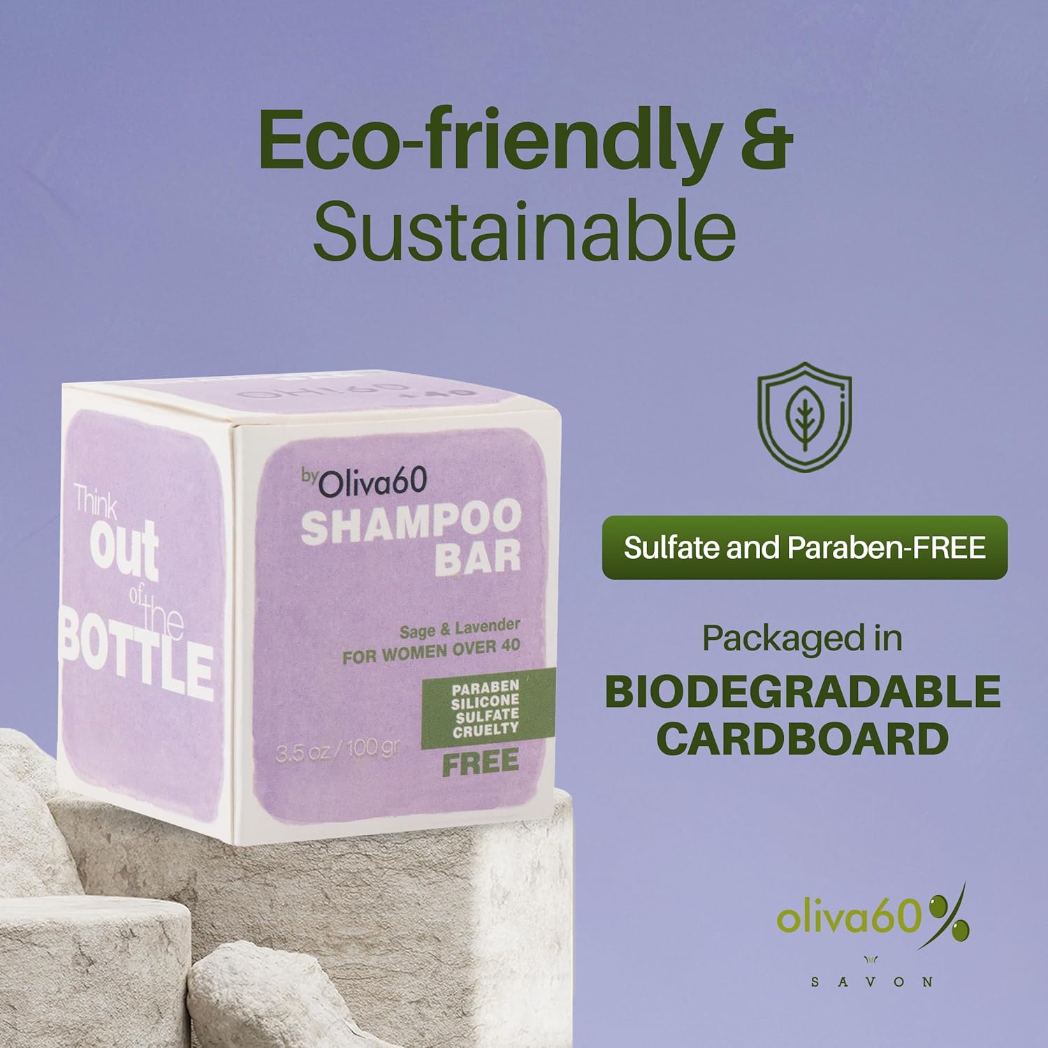 Shampoo Bar Sage Lavender | Hair Care - Made with Olive, Argan & Macadamia Oil | Sulfate & Paraben Free | Natural Hair Care | 3.5 oz | Hydrating & Strengthening | OLIVA 60