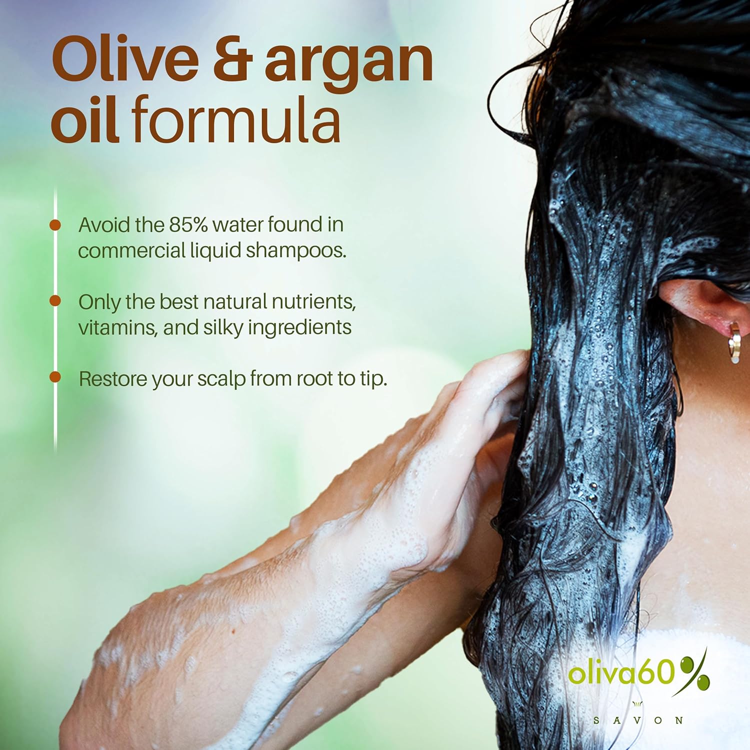 - OLIVE & ARGAN OIL FORMULA | Enriched with olive oil containing oleic acid, palmitic acid, and squalene for softening qualities, and organic argan oil high in antioxidants, essential fatty acids, and vitamin E to enhance hair elasticity and protection.