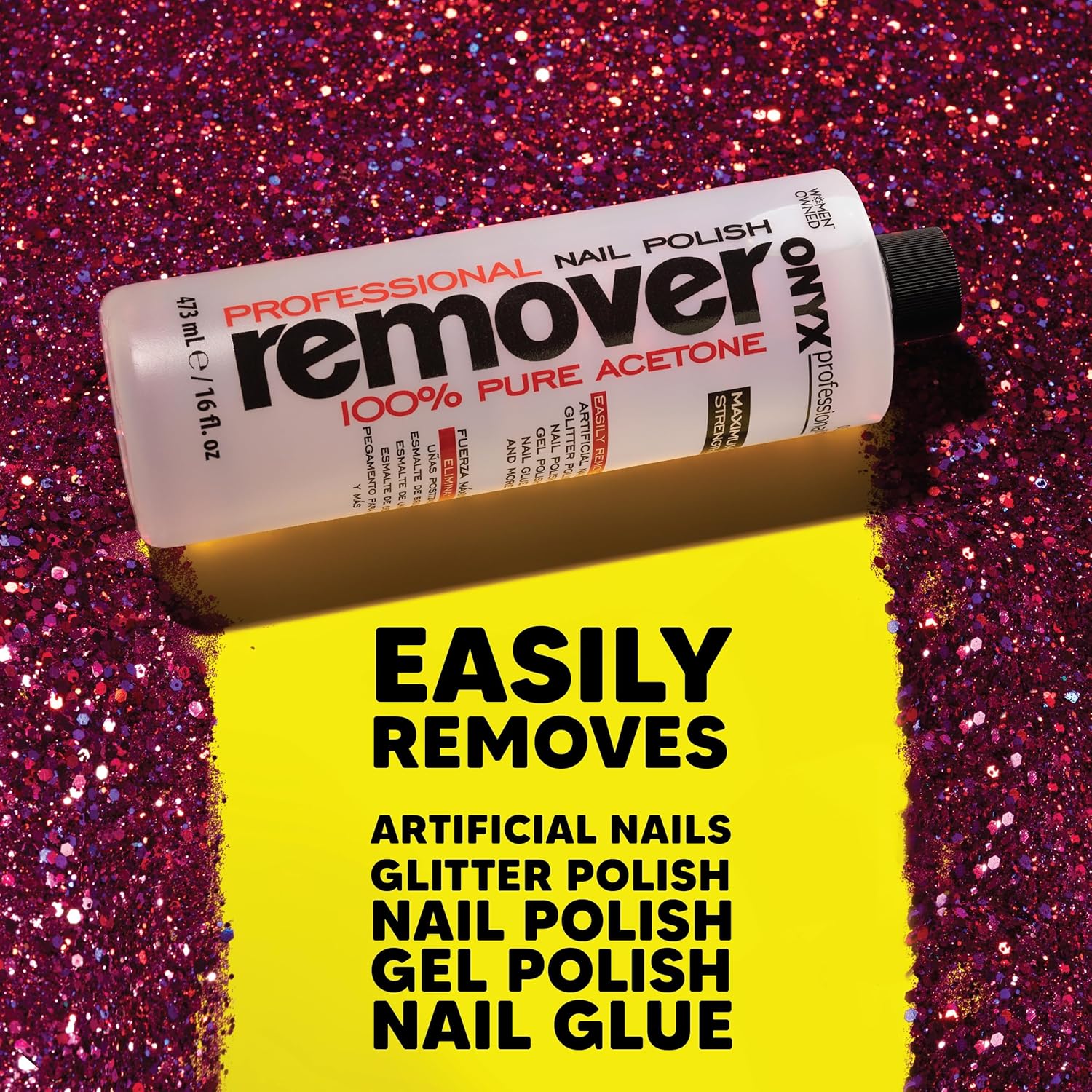 - 100% Acetone Gel Polish Remover & Nail File: Onyx Professional's pure acetone nail polish remover effortlessly removes a variety of nail polish, leaving your nails looking clean and polished, while the nail file shapes your nails the way you desire