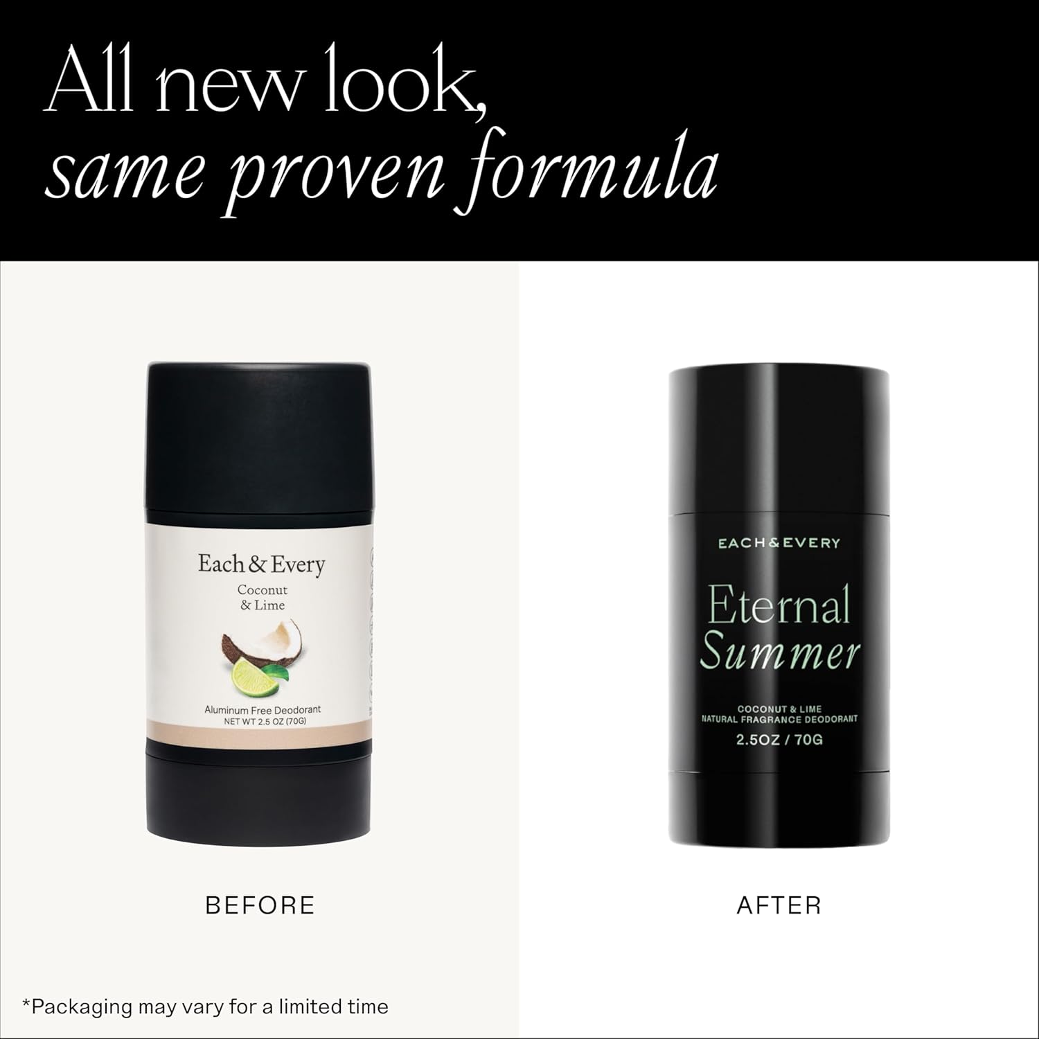 Each & Every Aluminum Free Deodorant for Men & Women, Coconut & Lime - All Natural Deodorant for Sensitive Skin, EWG Verified - Clean, Baking Soda-Free, Plant-Based Fragrance - 2.5oz, 2 Pack