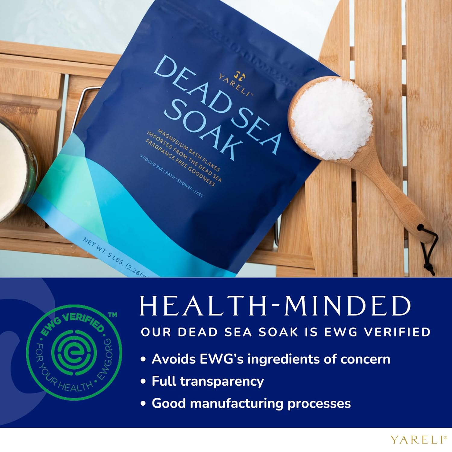 - Harvested from the Dead Sea - Yareli's pure magnesium chloride flakes are imported from the Dead Sea in Israel, a salt lake that people have visited for centuries for its relaxing properties