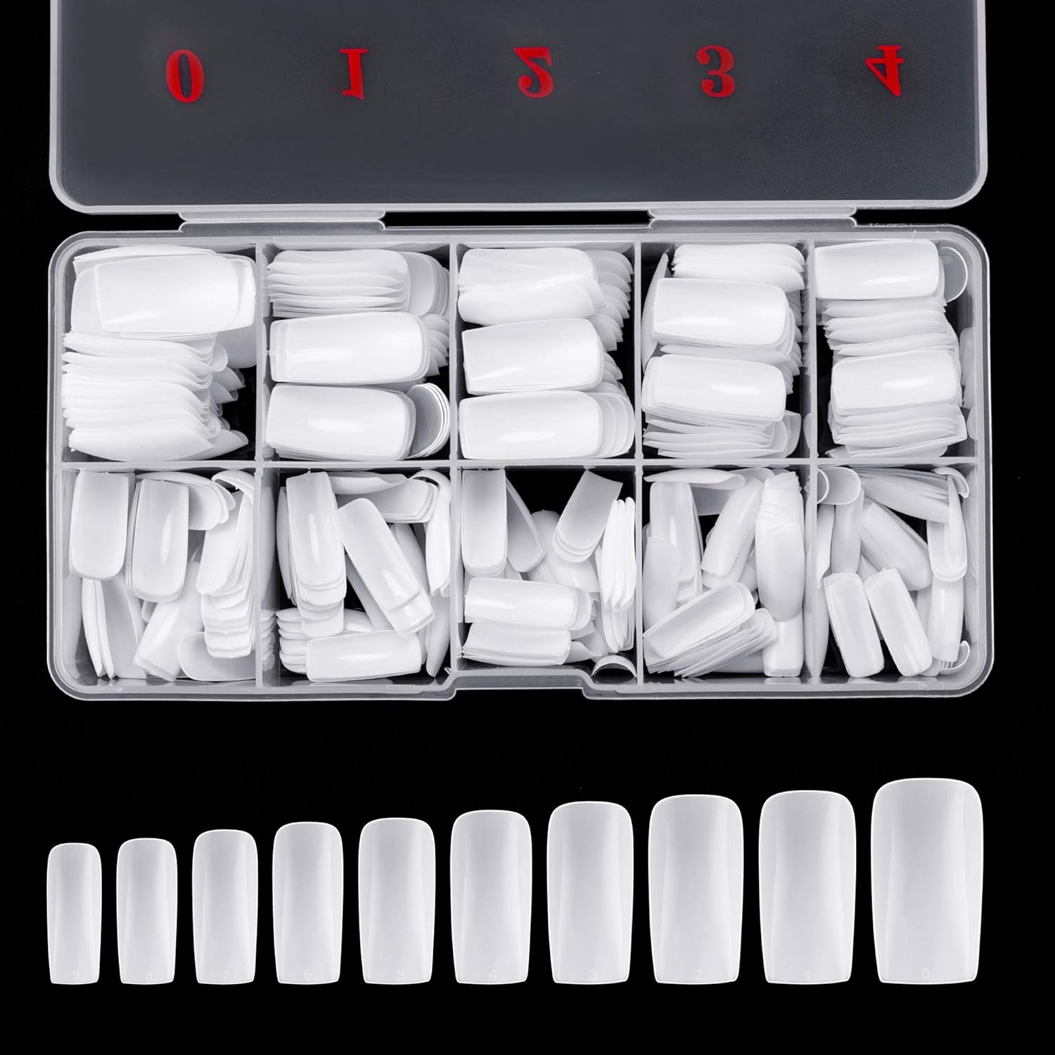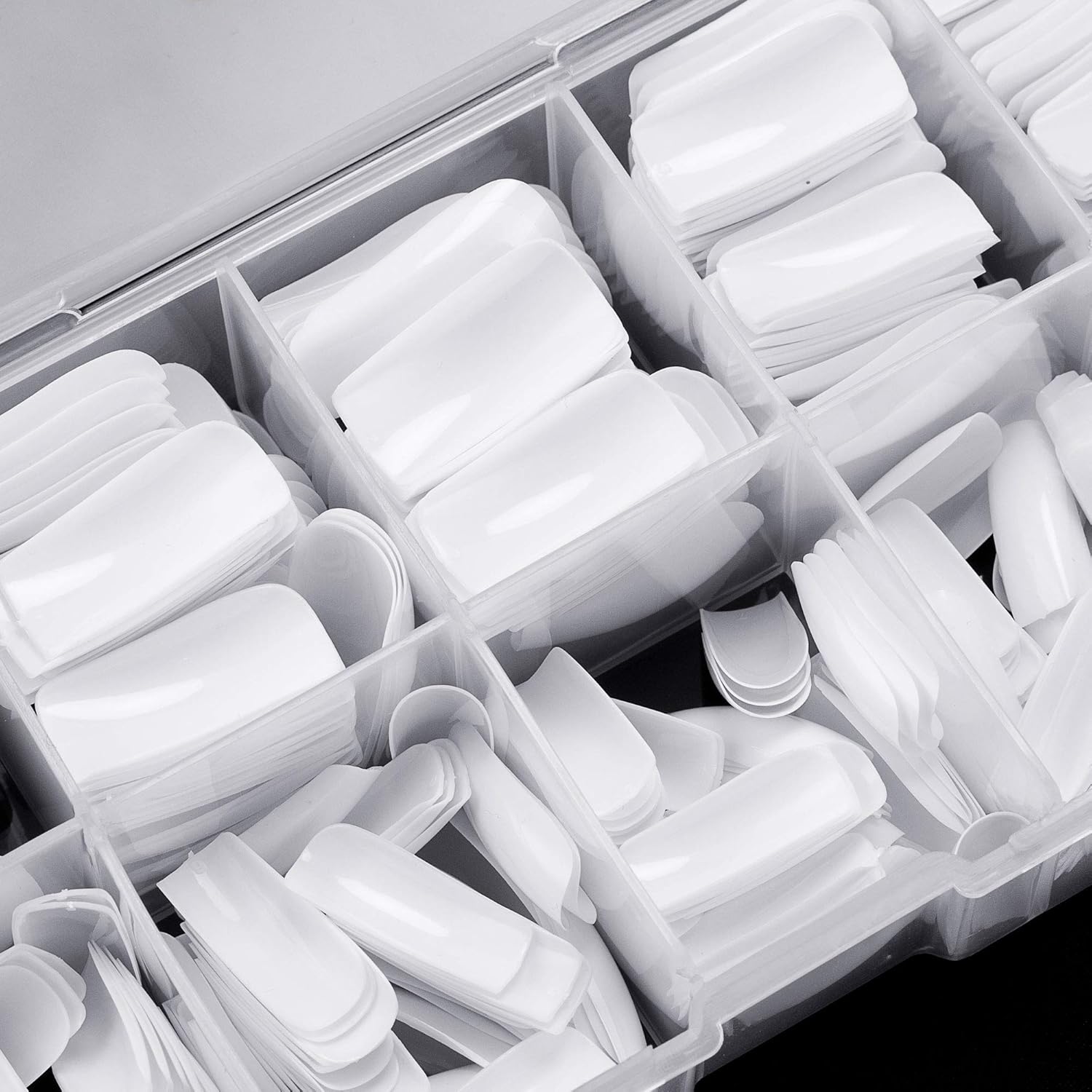 Full Cover Acrylic False Nail Tips, 500PCS Fake Nail Shape Artificial False Nails Tips 10 Sizes with Case for Nail Art Salons and Home DIY (White)