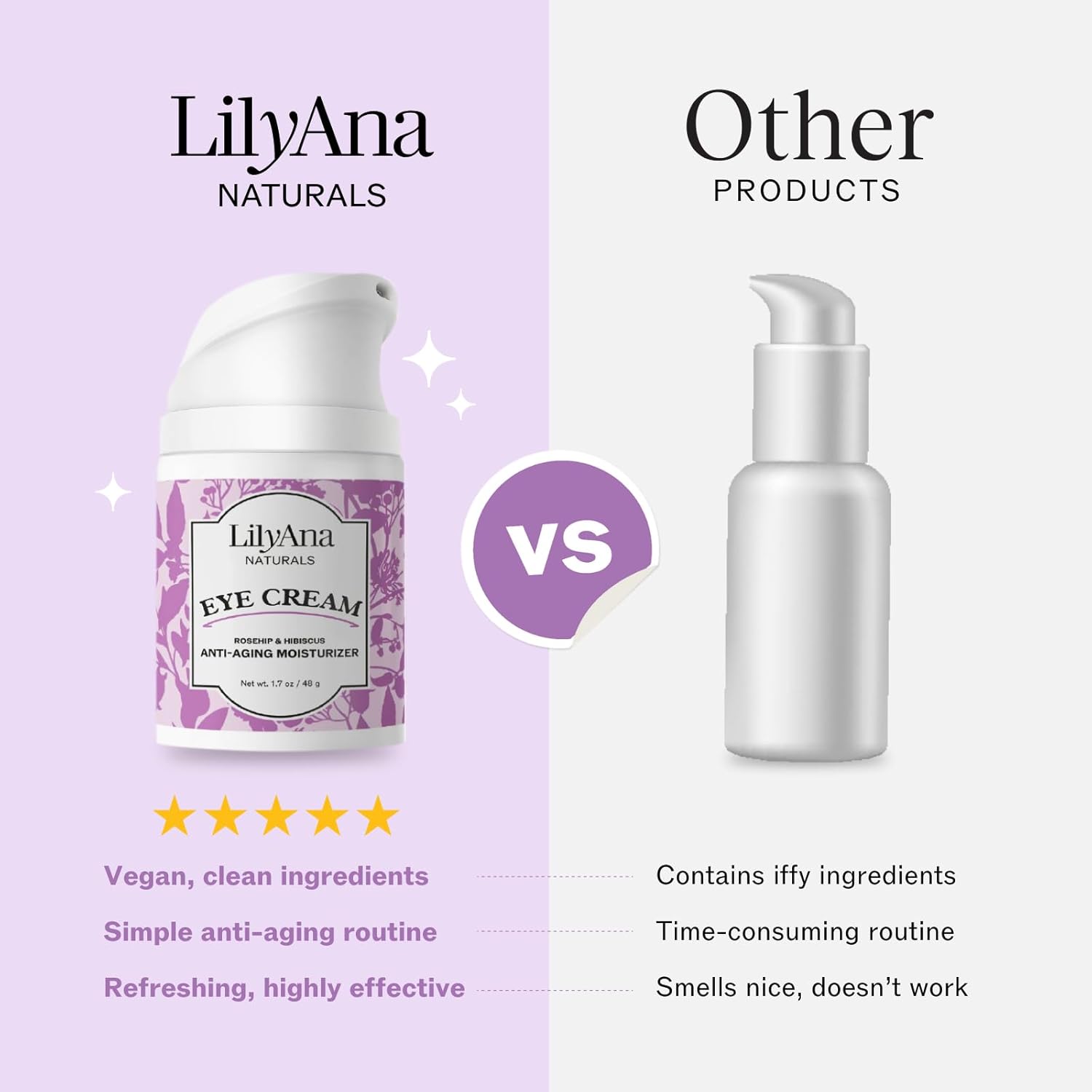 LilyAna Naturals Eye Cream for Dark Circles and Puffiness, Under Eye Cream for Wrinkles and Bags, Anti Aging Eye Cream helps Improve Dryness and Sensitive Skin - 1 oz - Made in USA