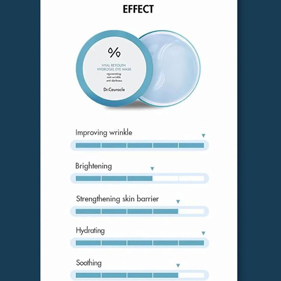Dr. Ceuracle 60 Pads Hyal Reyouth Hydrogel Eye Mask 90g Brightening, Moisturizing Sleeping Mask with Hyaluronic AcidㅣFirming Eye Gel TreatmentㅣAnti-AgingPatches for Dark Circles, Wrinkles