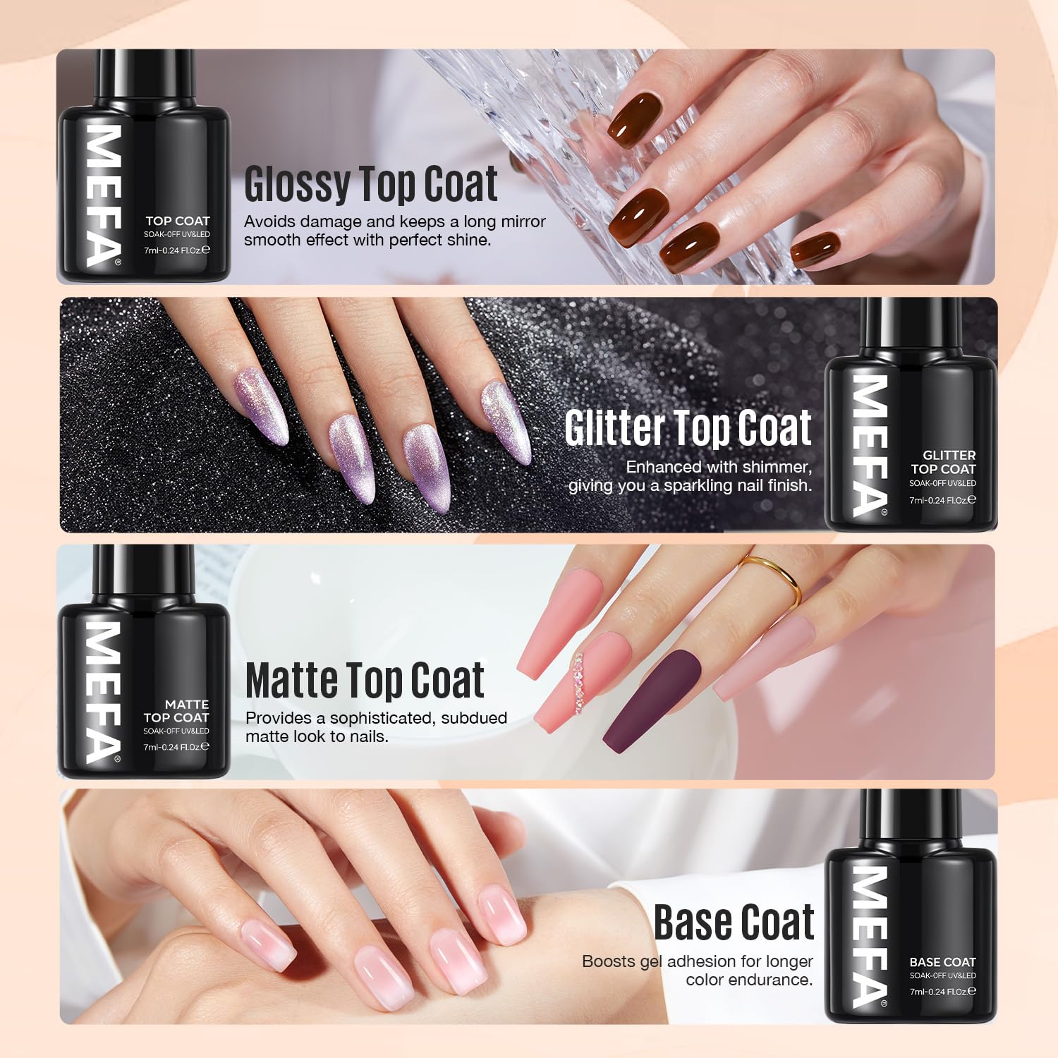 MEFA 60 Pcs Gel Nail Polish Kit with U V Light, 32 Colors All Seasons Nude Gel Nail Polish Set with Base and Matte/Glossy Glitter Top Coat Nail Art DIY Decorations Manicure Tools Gifts for Women