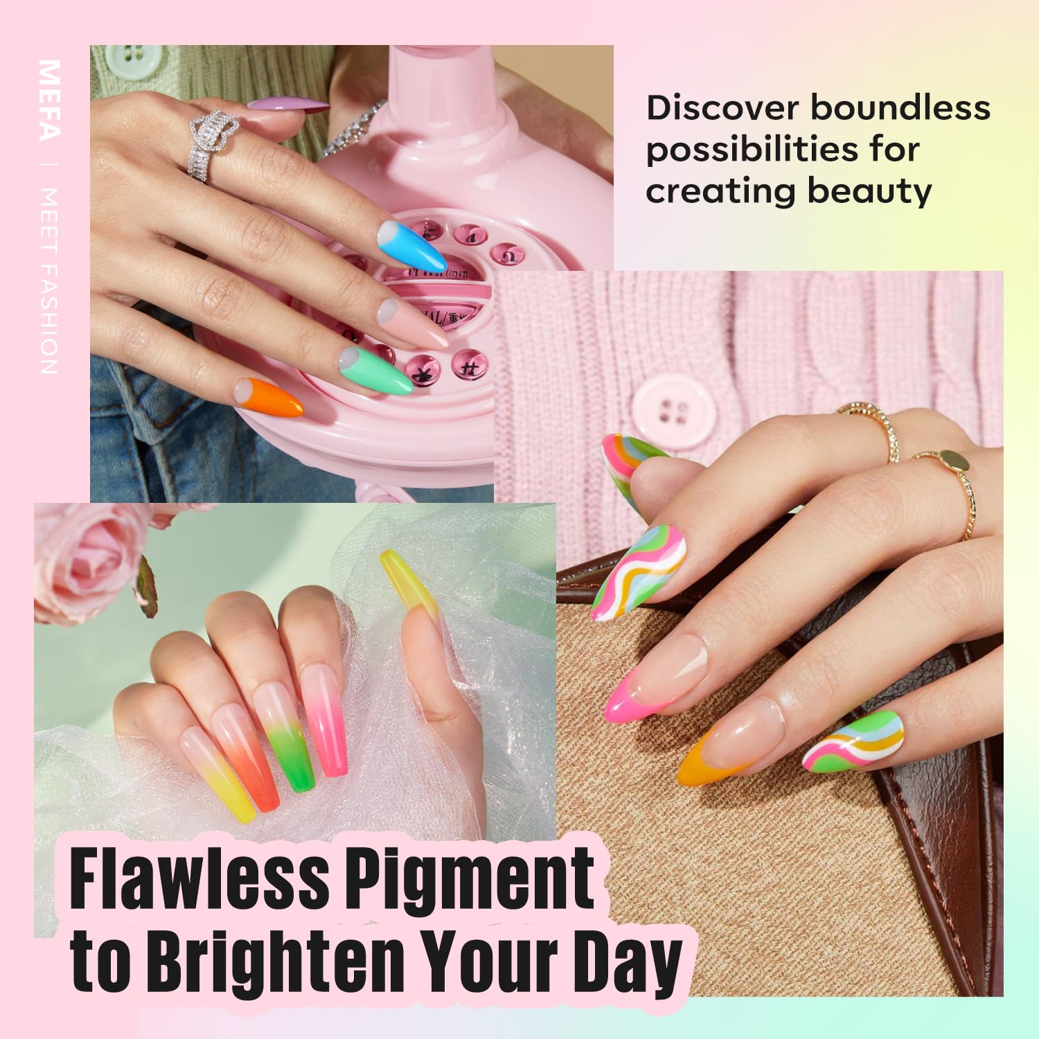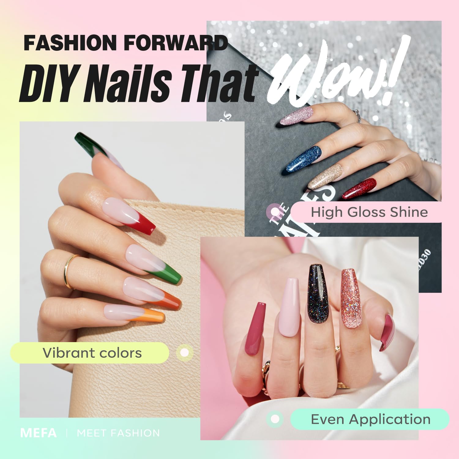 MEFA 56 Pcs Gel Nail Polish Kit with U V Light, 32 Colors Hot Pink Colorful Gel Nail Kit Glitter nail Polish Set Nail Art Decorations Manicure Tools DIY Gifts