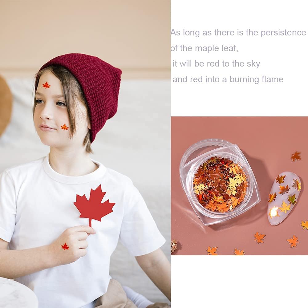 - Quantity: The package includes 5 Packs different colors maple leaves nail flakeswith separate storage space, shinning fall nail designs.(About 25 g)