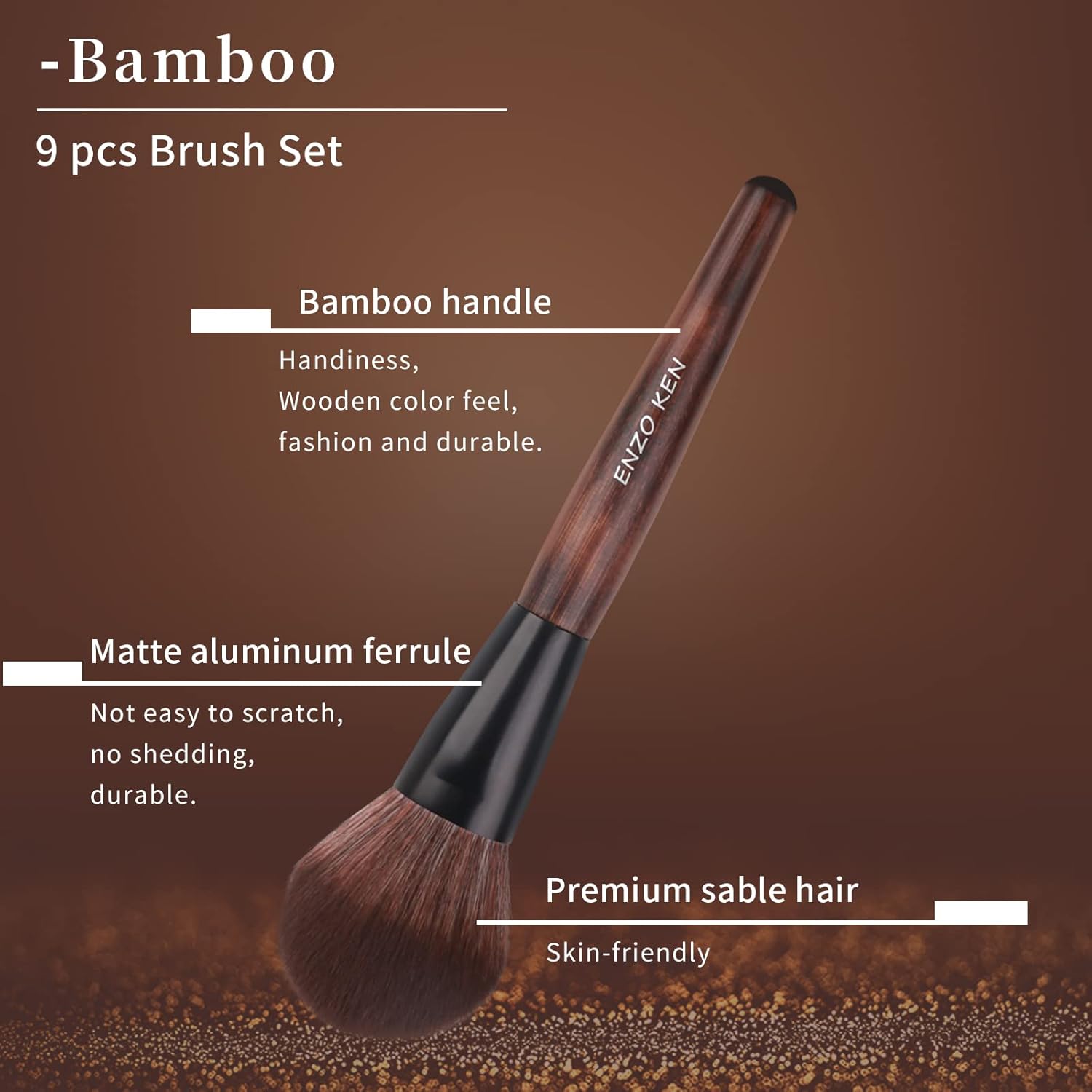 Bamboo Makeup Brushes Set Professional, Sable Makeup Brush Set with Case by Luxury ENZO KEN, Cosmetic Brushes Makeup Set, Make up Brushes Set Professional, Natural Hair Makeup Brush Set Professional.