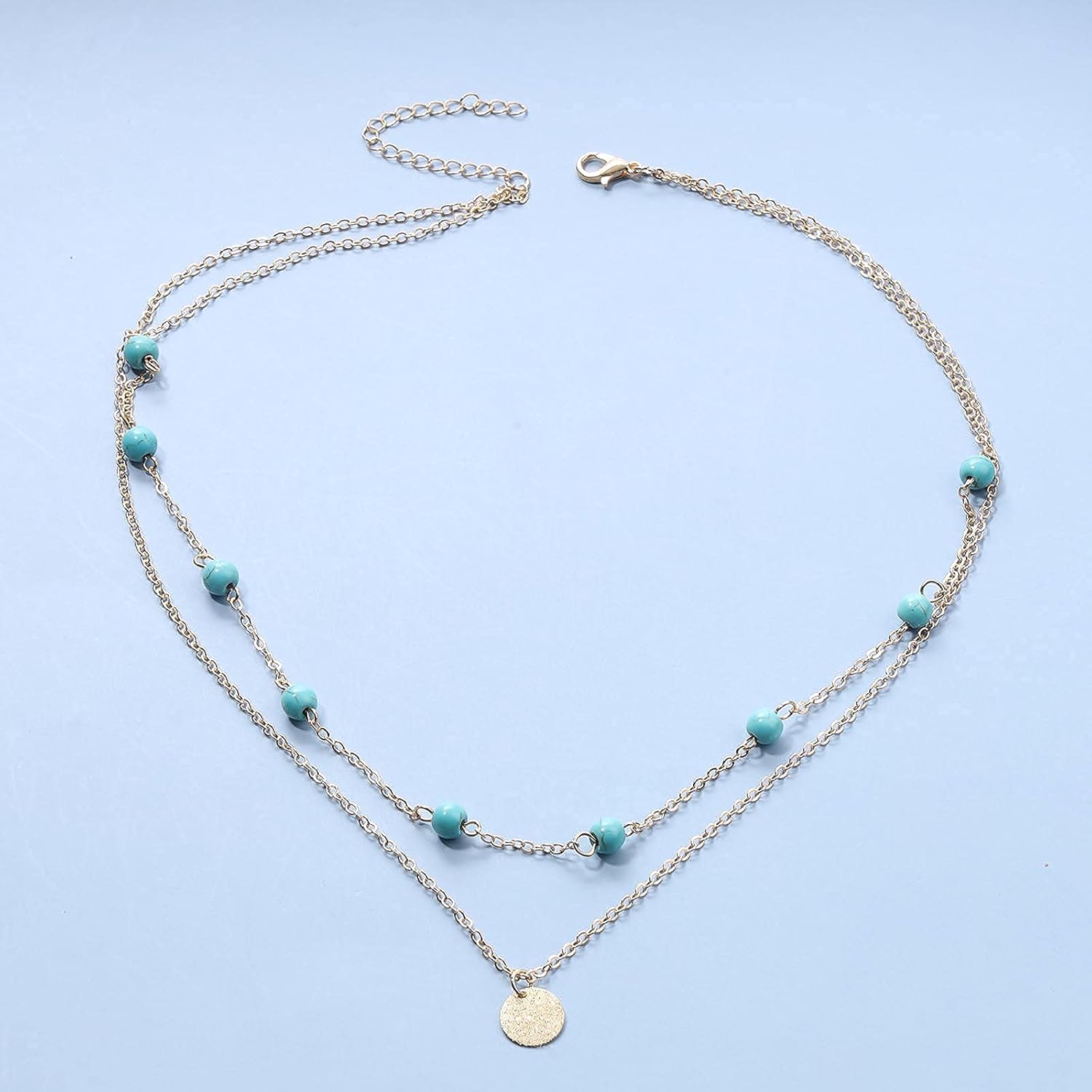 - Gold turquoise disc pendant chain made of high quality alloy,easy to match clothes.