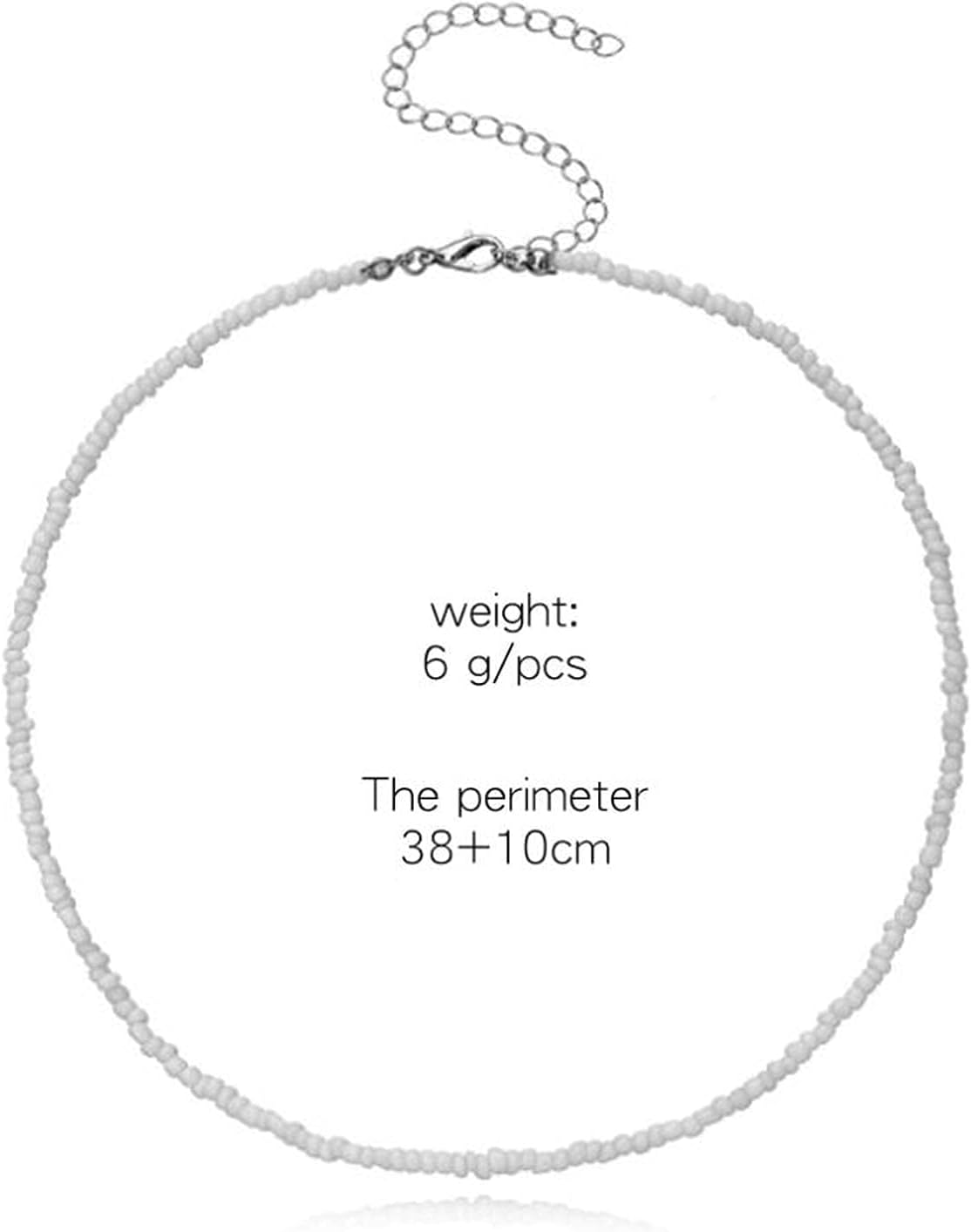 - White Beaded Necklace chain choker approach 14inch,with 2 inch extension chain,adjustable for you.