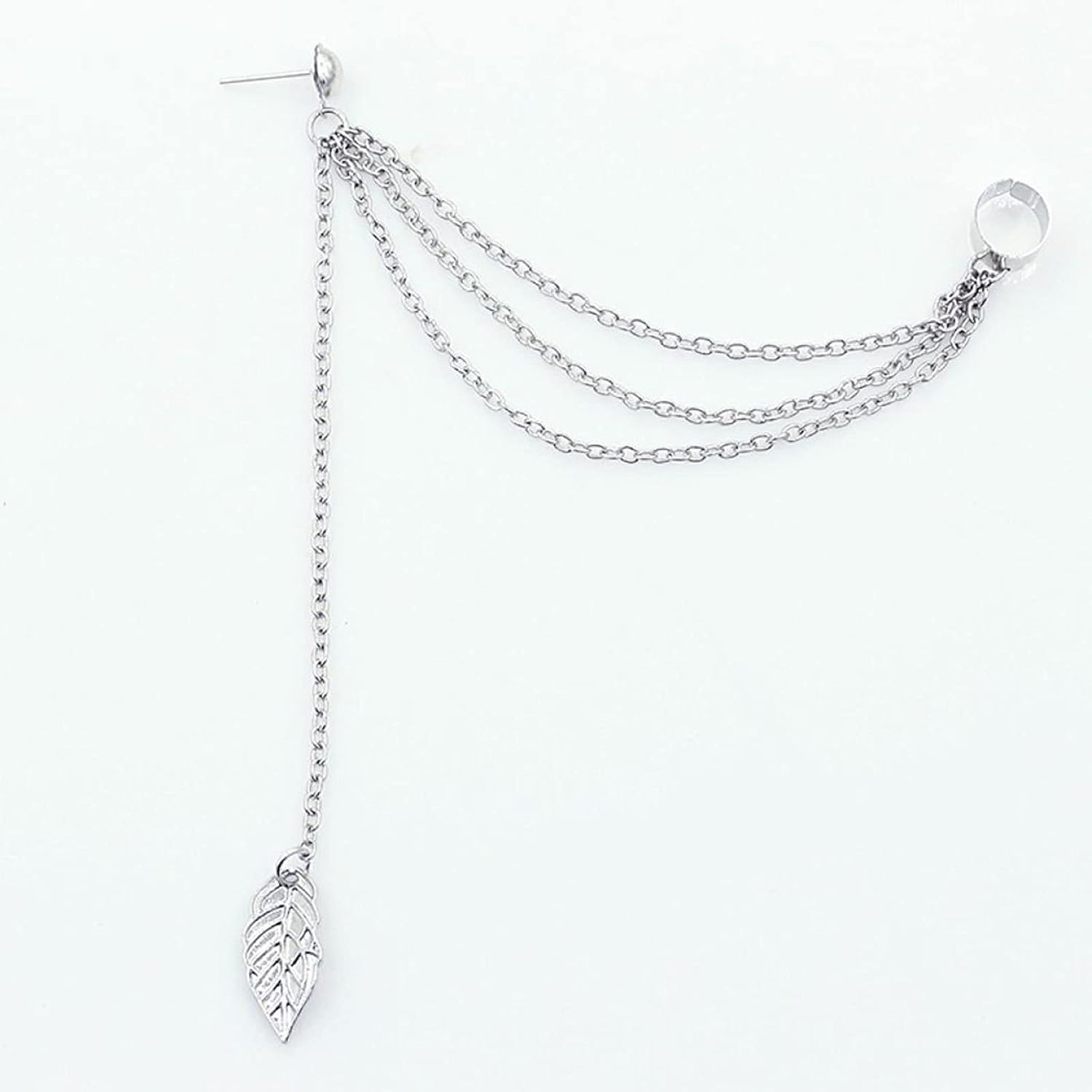 Boho Leaf Cuff Chain Earrings Silver Dangle Chain Earrings Cartilage Helix Earrings Cuff Helix to Lobe Chain Earrings Jewelry for Women and Girls
