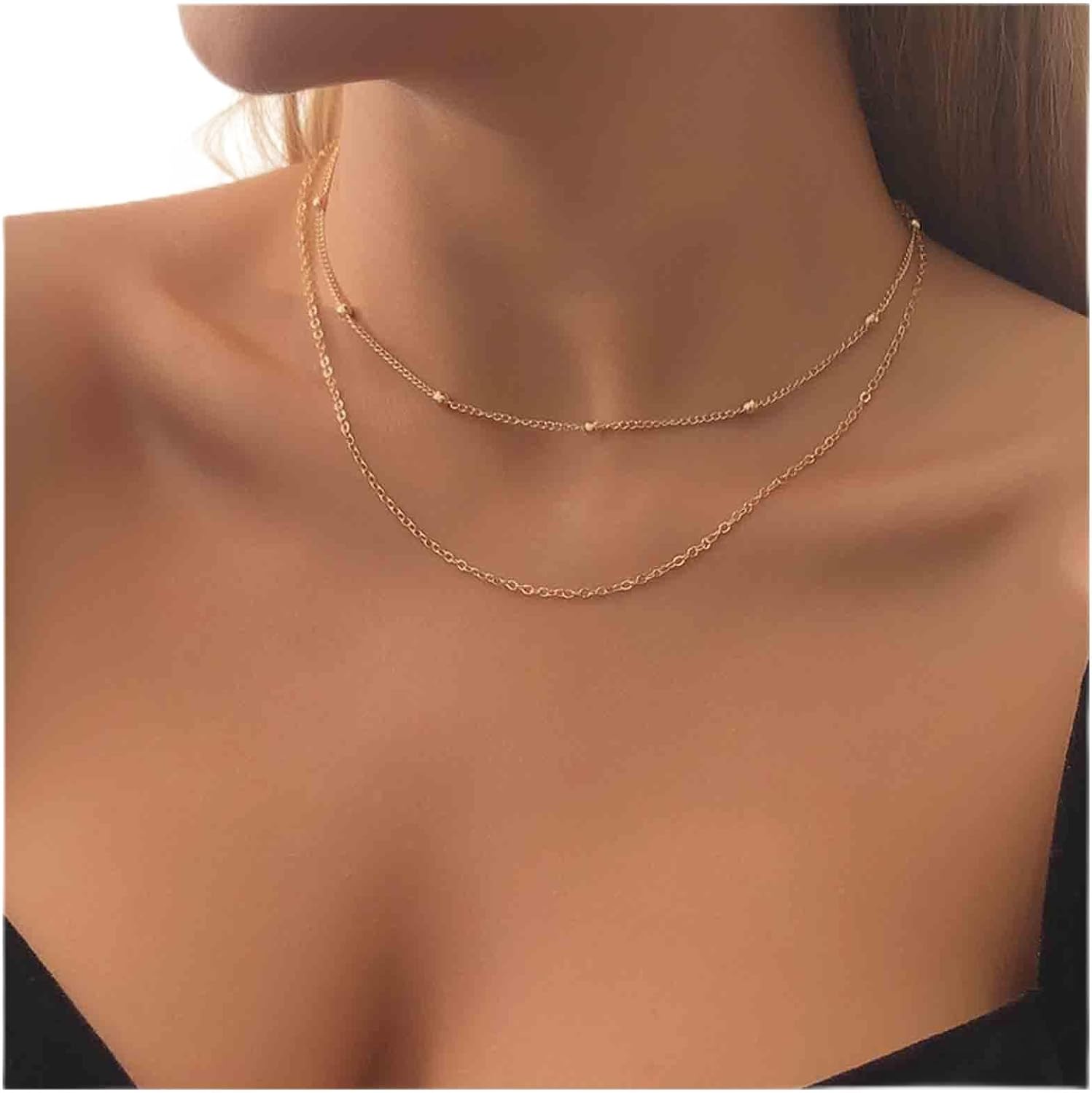 Boho Layered Satellite Choker Necklace Gold Ball Chain Necklace Short Collar Necklace Vintage Double Layer Necklace Jewelry for Women and Girls Gifts