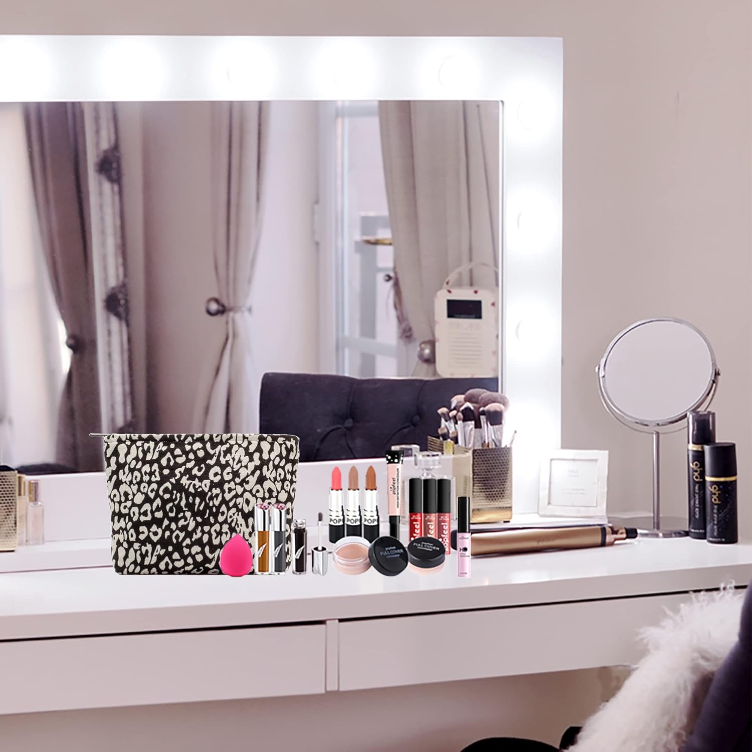 Makeup Bags for Purse Zipper Cosmetic Pouch Large Travel Canvas Make Up Organizer Tool Pouch for Women and Girls,Leopard Black