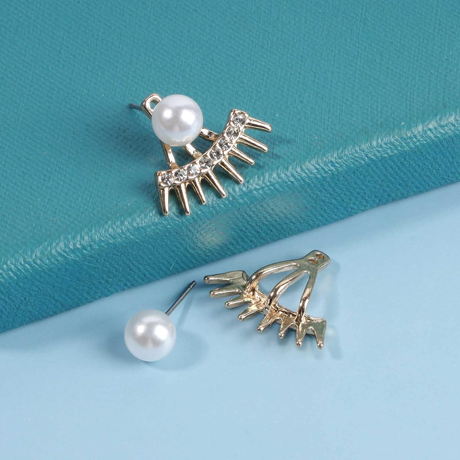 Punk Spike Ear Jacket Earrings Gold Pearl Studs Earrings Minimalist Front Back Studs Earrings Modern Edgy Earrings Jewelry for Women and Girls Gift