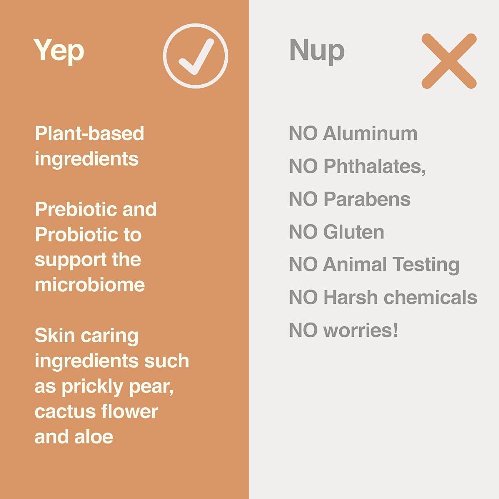 - ✔️ DERMATOLOGIST TESTED: Our probiotic rich formula is proven to be allergen free and non-irritating for all skin types. Each deodorant is microbiome approved, and filled with botanicals known to prosper in the harshest environments including coconut, prickly pear, cactus flower, and aloe. Together, these plants with modern science are the best pit crew around!