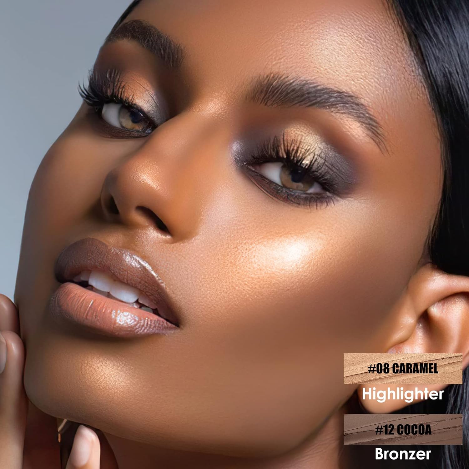 - Create 3D Makeup Effect:This contour stick set has a radiant bronzer and a shimmering highlighter to give skin a warm, natural glow. It melts beautifully into skin, never feeling sticky or greasy, and gives skin a revived and youthful look.