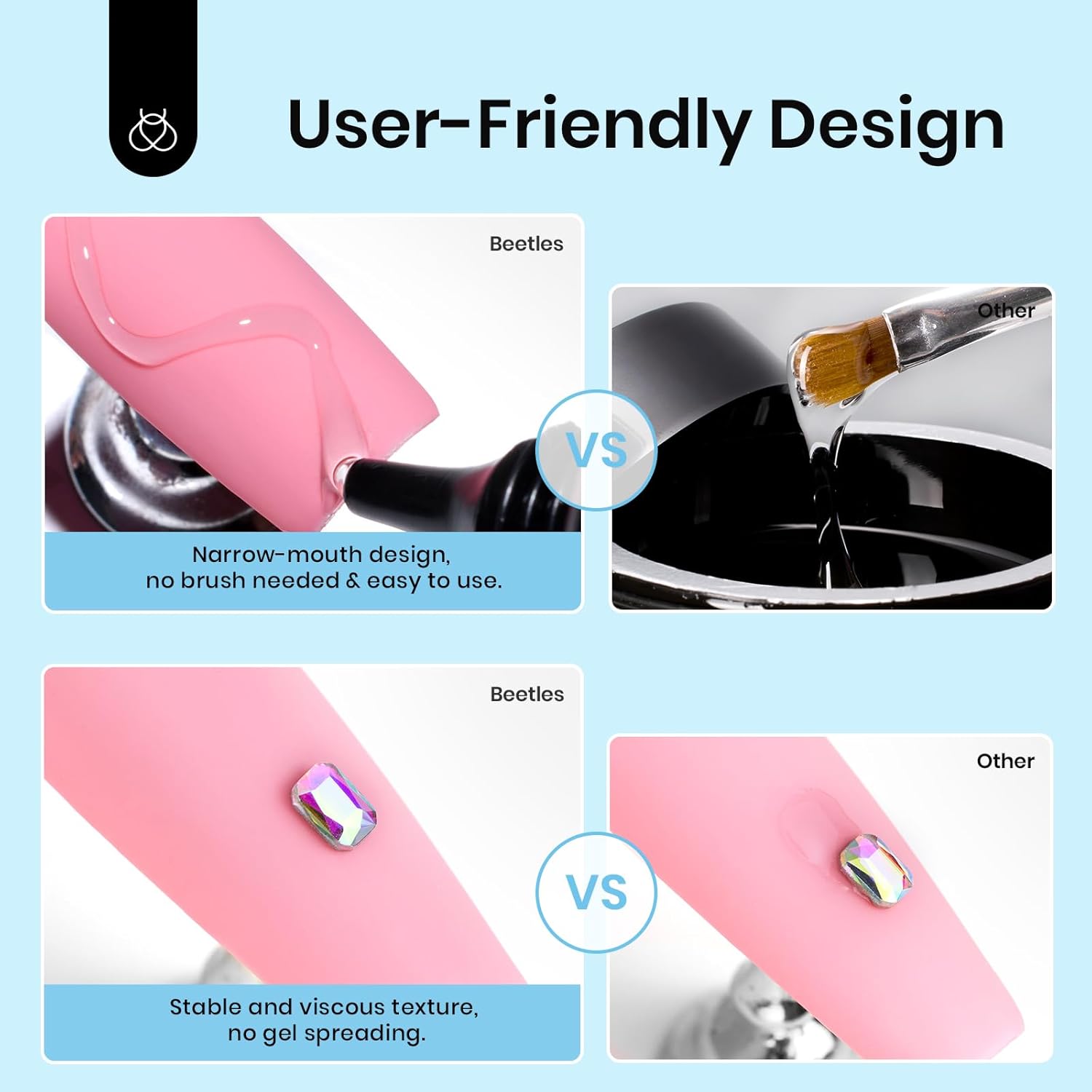 Beetles Rhinestone Glue for Nails, Gel Nail Glue for Nail Charms Decoration Super Strong Bling Gem for Nail Art Jewels Crystals Beads Diamonds 3D Beauty Gift