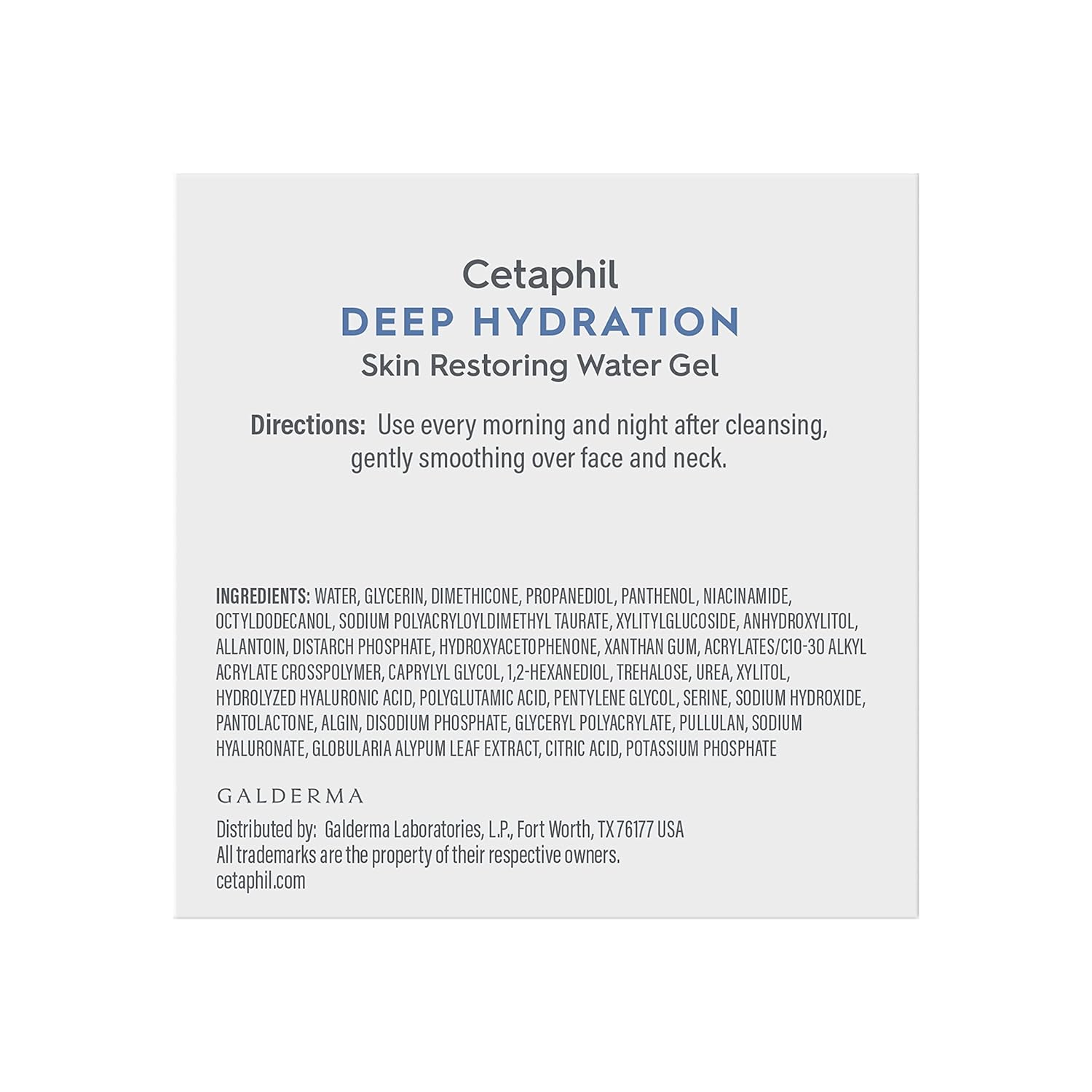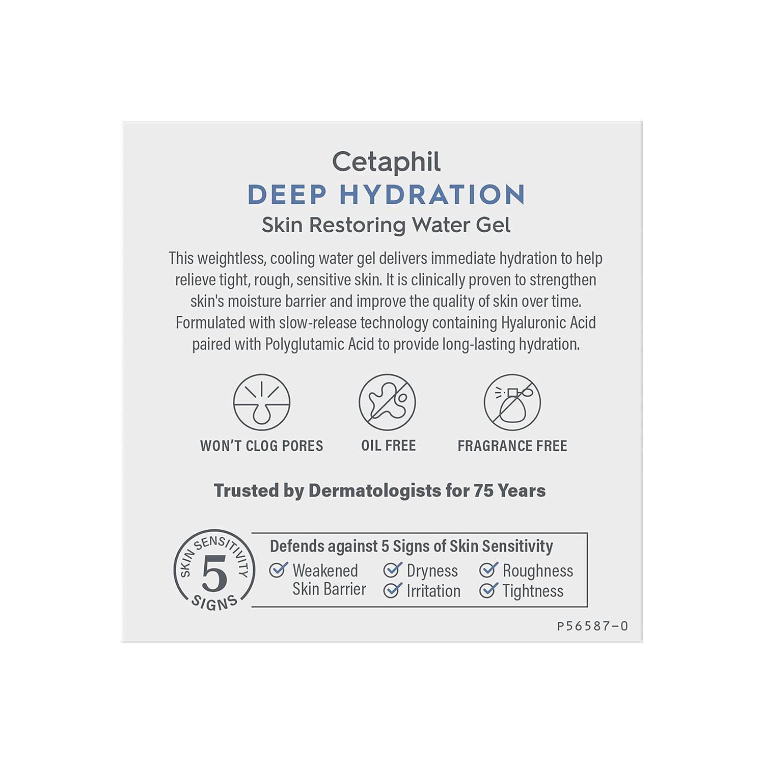 - CETAPHIL DEEP HYDRATION SKIN RESTORING WATER GEL: Cooling, weightless water gel clinically proven to instantly boost the skin's water content and maintain hydration for 72 hours, improves the quality of sensitive skin