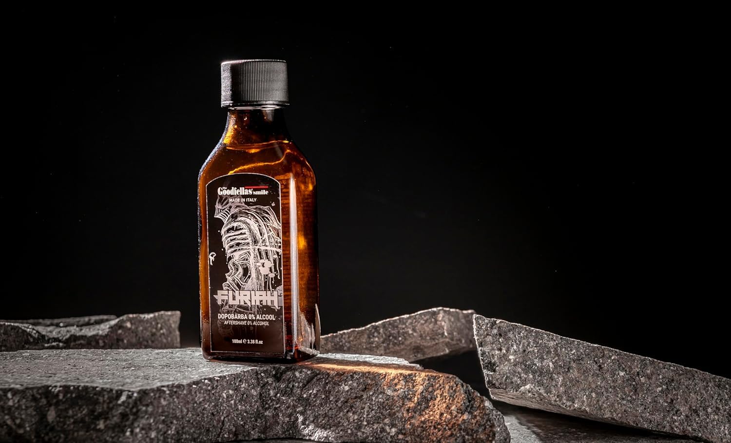 The Goodfellas' smile Soothing Alcohol-Free Aftershave Splash/Tonic, Made in Italy, 100 ml, 3.38 oz (FURIAH/Leather & Wood)