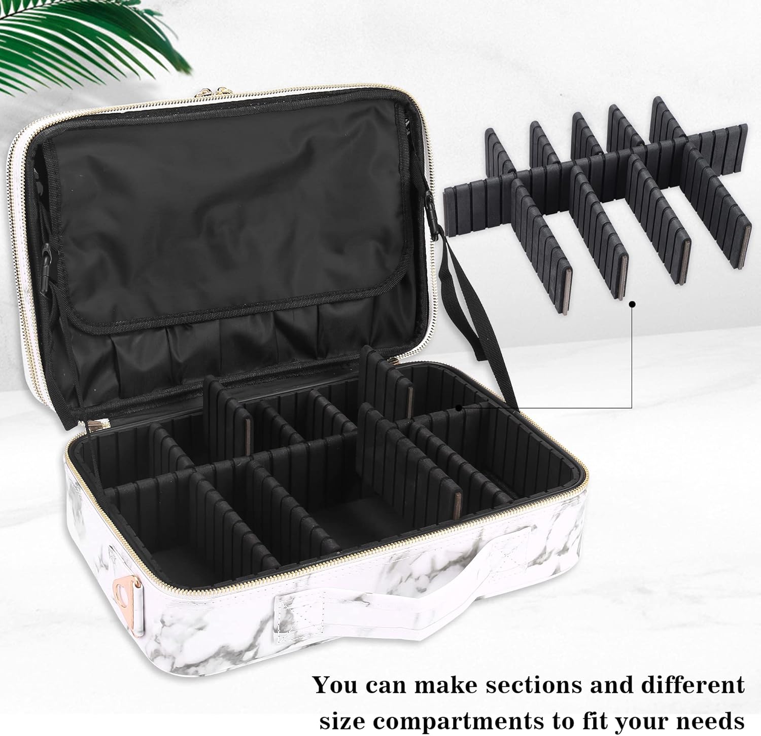 JOURMON Travel Makeup Case 3 Layers Makeup Train Case Marble Makeup Bag Organizer Portable Artist Storage Bag with Adjustable Dividers and Shoulder Strap (Marble white)